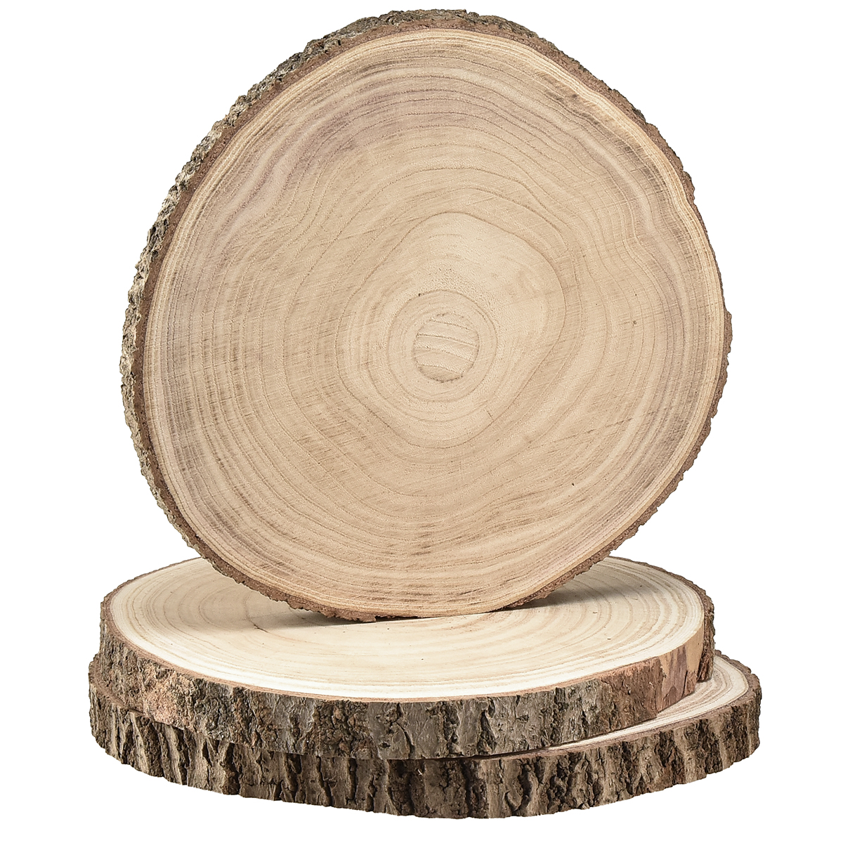Fedezze fel a természet szépségét Paulownia faszeleteink formájában. Ez a három kerek fakorongból álló készlet tökéletes barkácsolási projektekhez, rusztikus asztaldíszekhez és természetbarát ajándékcsomagolásokhoz. Minden körülbelül 26-28 cm átmérőjű lemez egyedi, természetes megjelenést kölcsönöz, amely meleget és kényelmet hoz otthonába.