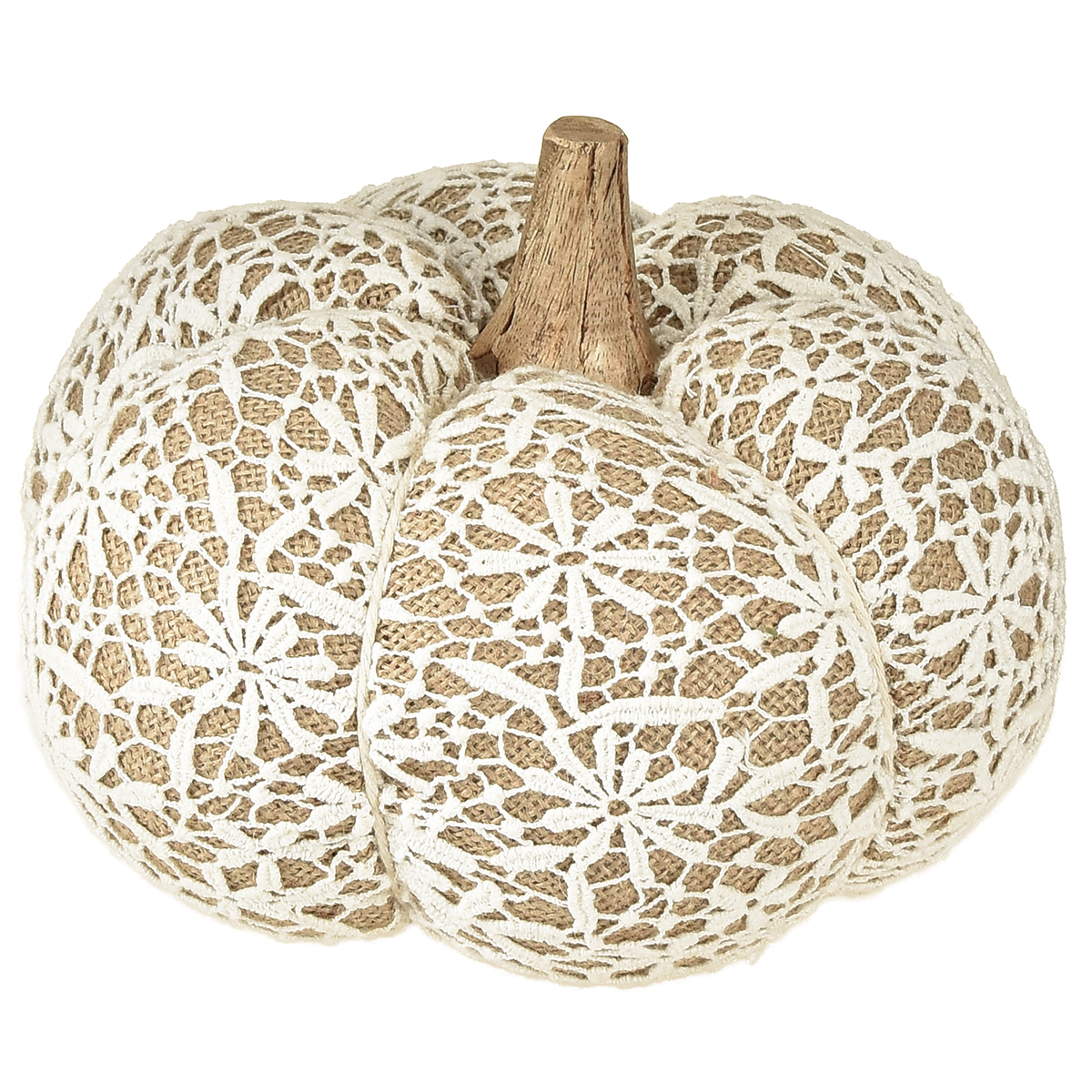 Termék neve: Textil tök dekoráció juta csipke fehér/bézs vintage dekoráció Ø18cm
