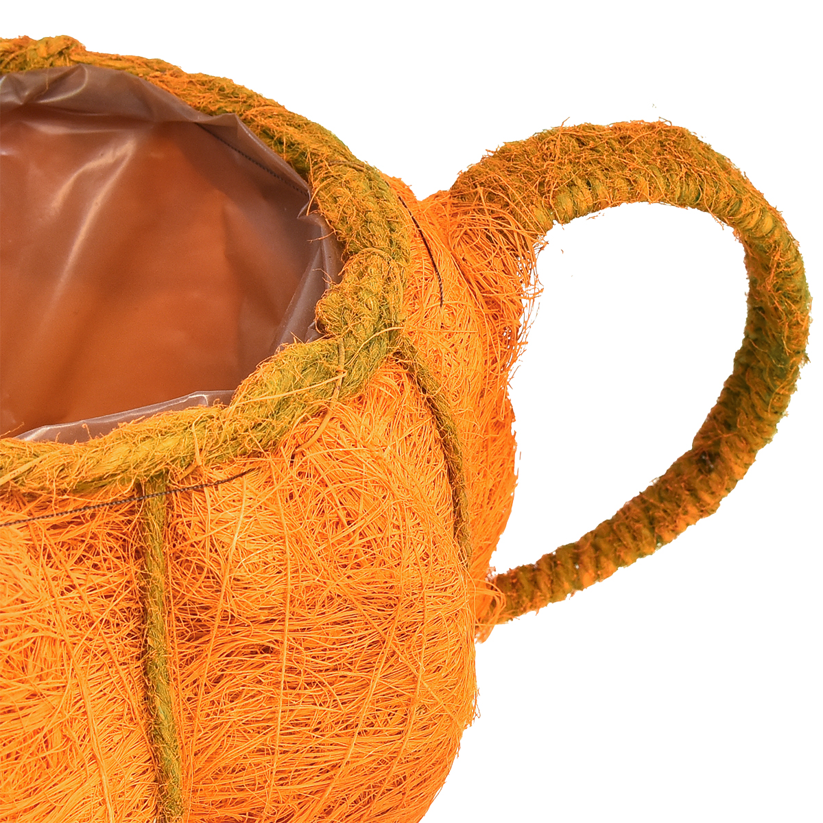 Akár a Halloween-dekoráció részeként, akár szokatlan, eredeti virágcserépként – ez a cserép sokoldalú. A szizálzsinórral borított fogantyú rusztikus hatást ad, és könnyen hordozhatóvá teszi az edényt.