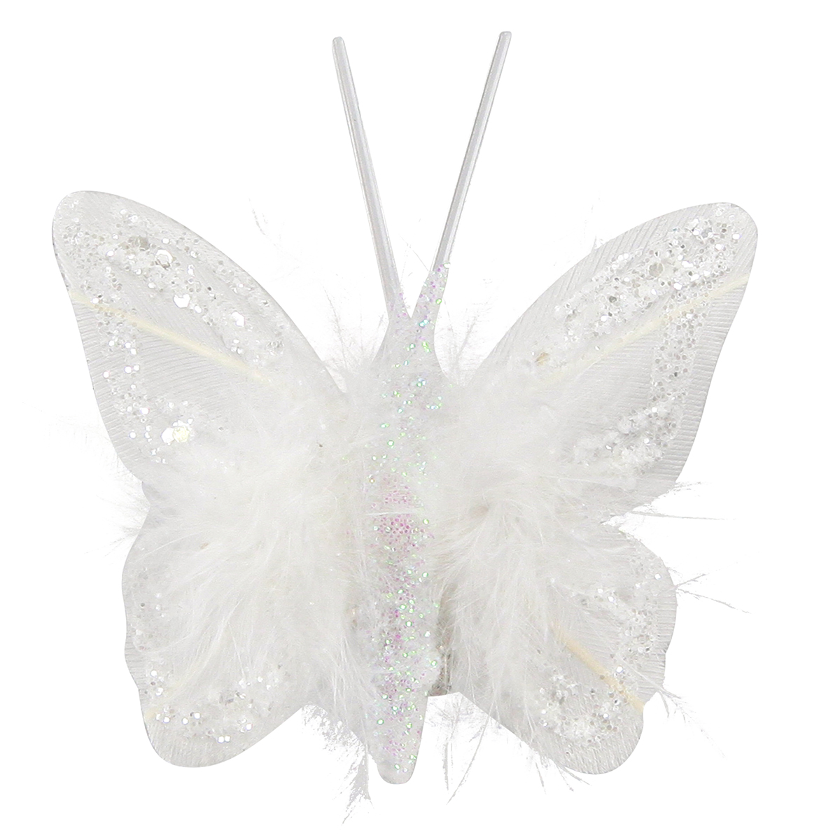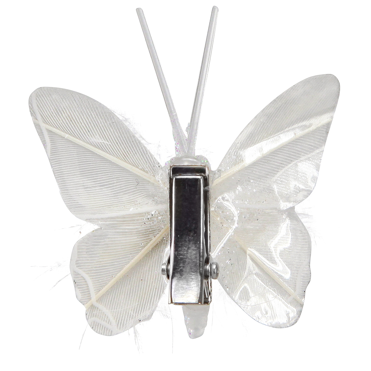 Termék neve: Tollas pillangók klipre fehér csillám 5x4,5cm 4 db
