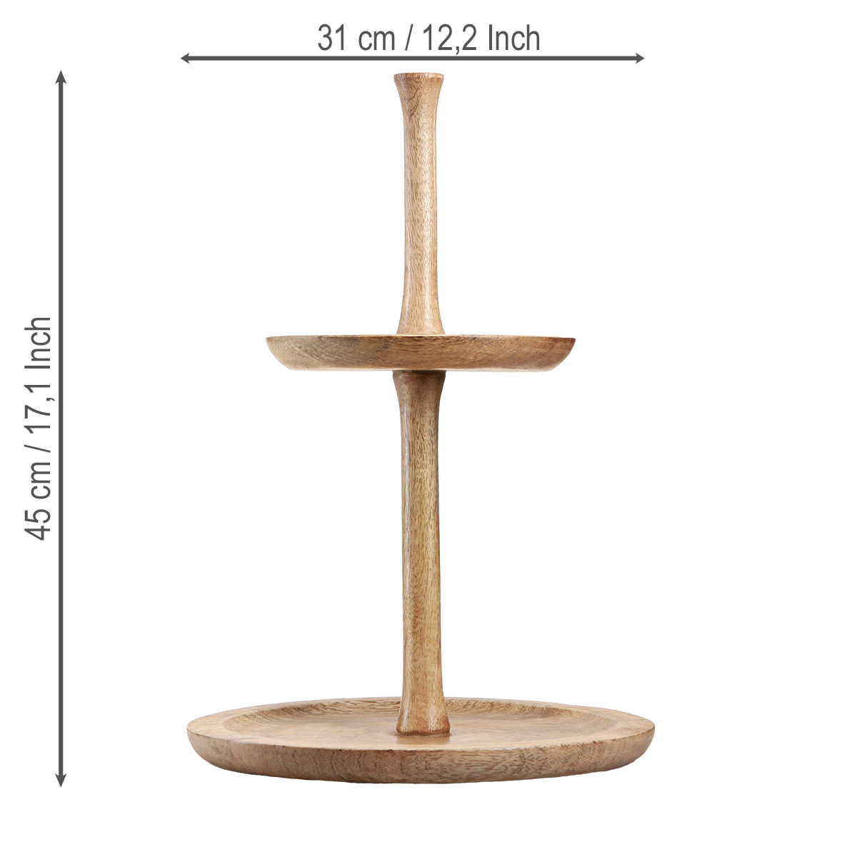 Tortatartó fa dekoráció 2 szintes natúr kerek Ø31/20cm H45cm