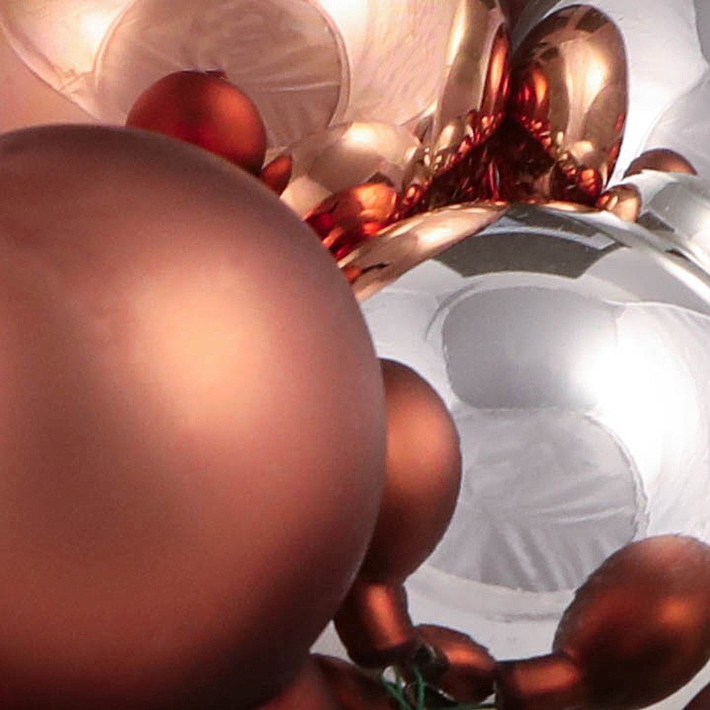 A kis karácsonyfa golyókat zöld drótra rögzítjük, ami nagyon egyszerűvé teszi a karácsonyfára, koszorúra vagy adventi koszorúra rögzítését. A nagyobb tükörbogyók szemet gyönyörködtetőként szolgálnak és harmonikus összképet biztosítanak.