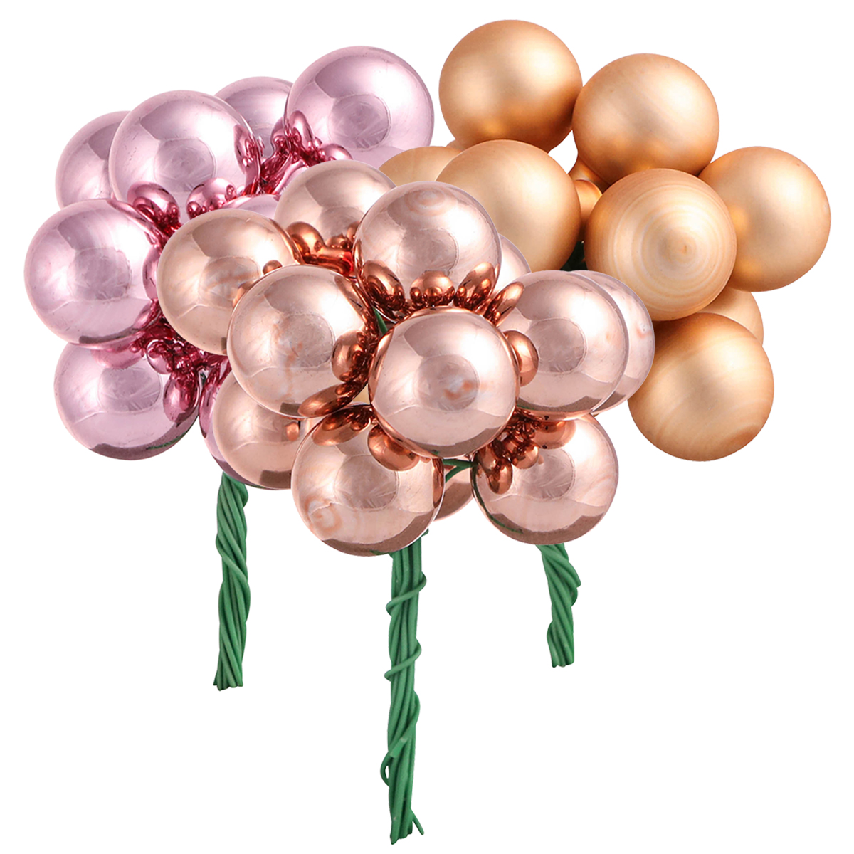 A kiváló minőségű tükörbogyók üvegből készülnek, matt és fényes kombinációban. Minden golyó külön-külön van rögzítve a zöld huzalhoz, ami lehetővé teszi a könnyű és változatos rögzítést. Körülbelül 20 mm átmérőjűek, ideálisak mini karácsonyi bálnak, és ideálisak adventi koszorúk vagy ablakdíszek egyedi díszítésére.