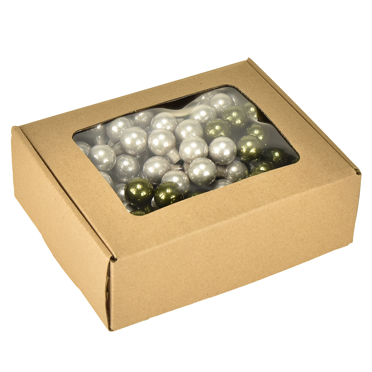 Termék neve: Tükörbogyós Karácsonyi Díszek Zöld Ezüst Ø20mm 140db