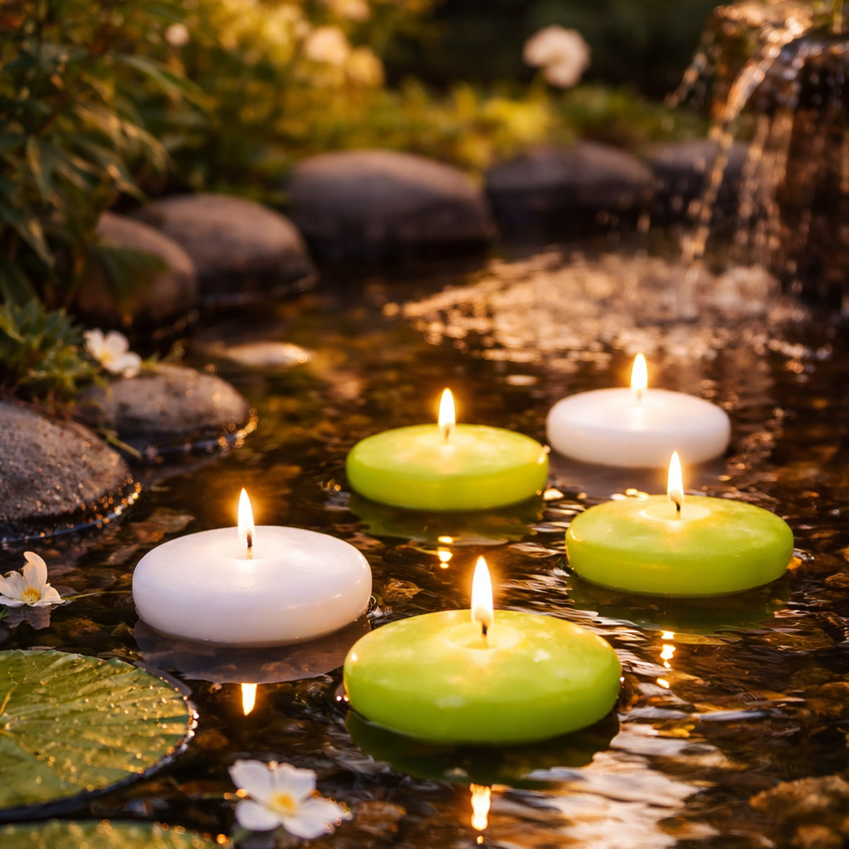 Ha idén nyáron meghitt hangulatot szeretne teremteni, ezek a fehér úszógyertyák pont megfelelőek. Kerek és laposak, elegáns kiegészítői lehetnek egy kerti tóban vagy egy kis tóban, meleg fényben fürdetve a víz felszínét. A tavirózsák, nád és más vízinövények között ezek a kiváló minőségű viaszos úszógyertyák szinte varázslatos hatást keltenek, egyedi hangulatot kölcsönözve a kerti partiknak és a nyári összejöveteleknek. Tökéletesek medencepartikra és hasonló ünnepségekre is.