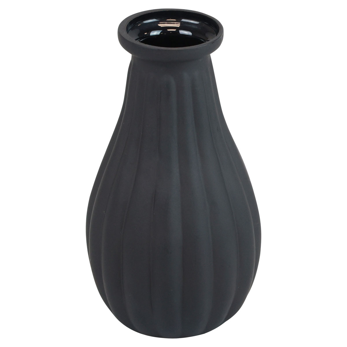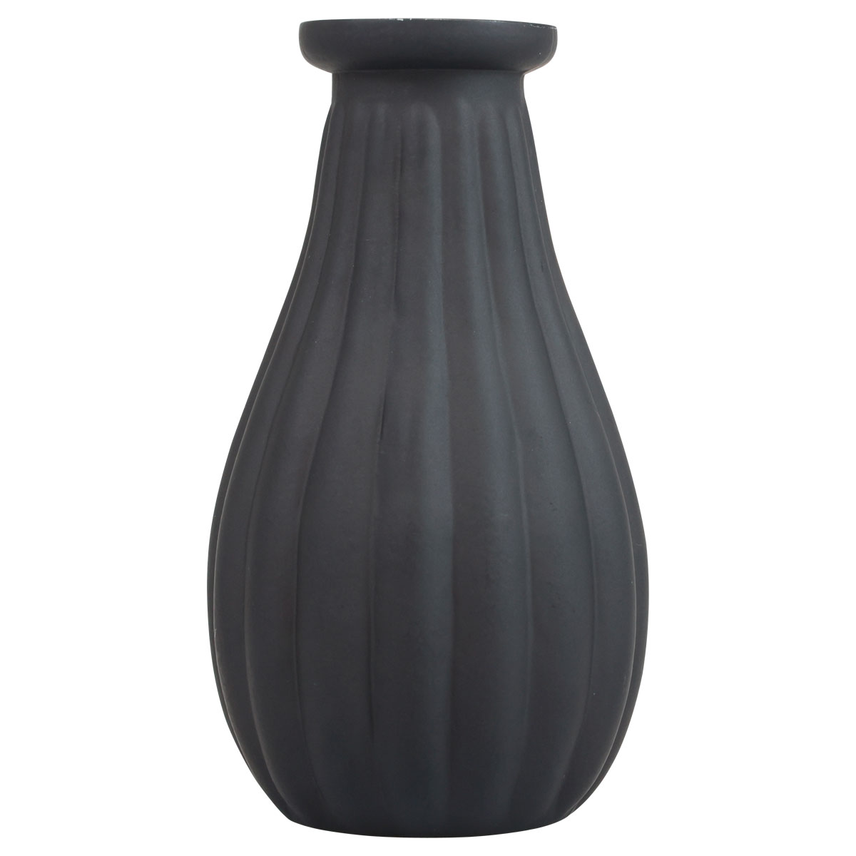 Váza fekete üveg váza hornyok dekoratív váza üveg Ø8cm H14cm