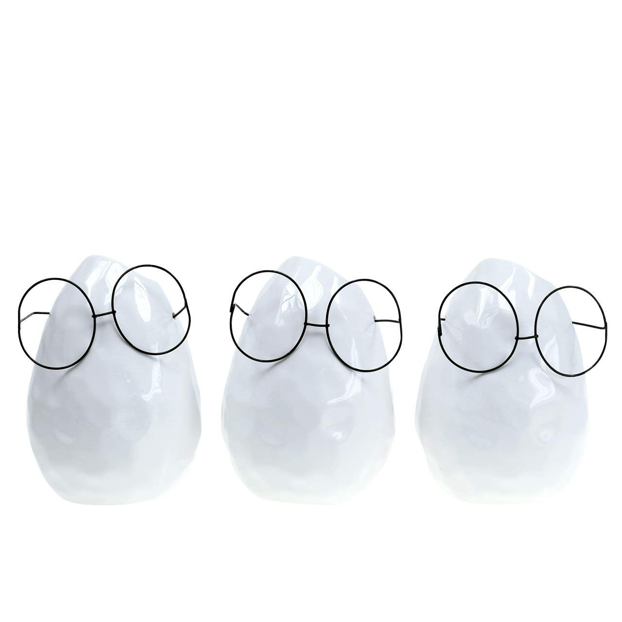 Váza szemüveggel Húsvéti dekoráció kerámia fehér Ø8,5cm H13cm 3 db
