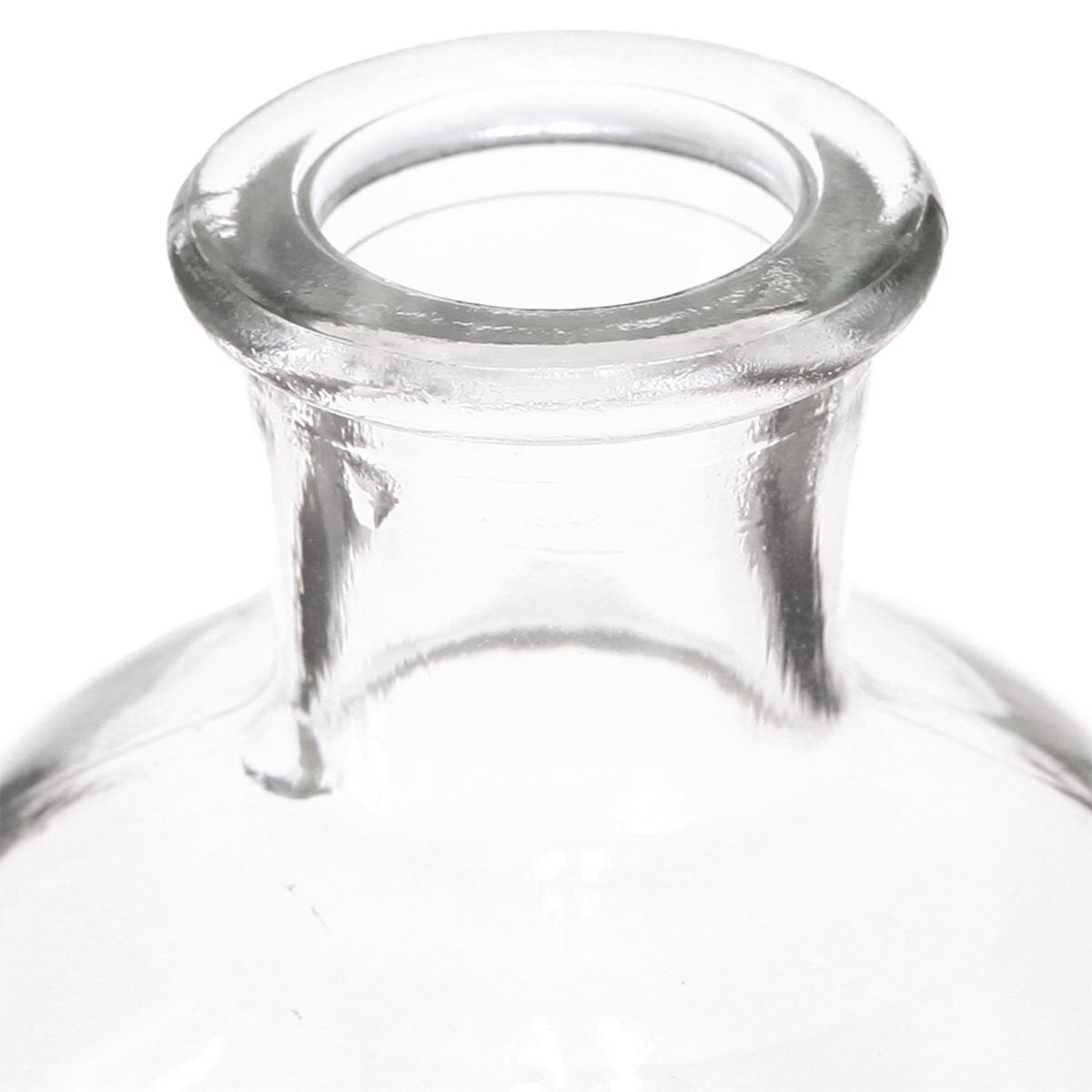 Az átlátszó üvegváza körülbelül 10 centiméter magas, a nyílás átmérője körülbelül 2 centiméter, az aljának átmérője pedig körülbelül 5,5 centiméter.