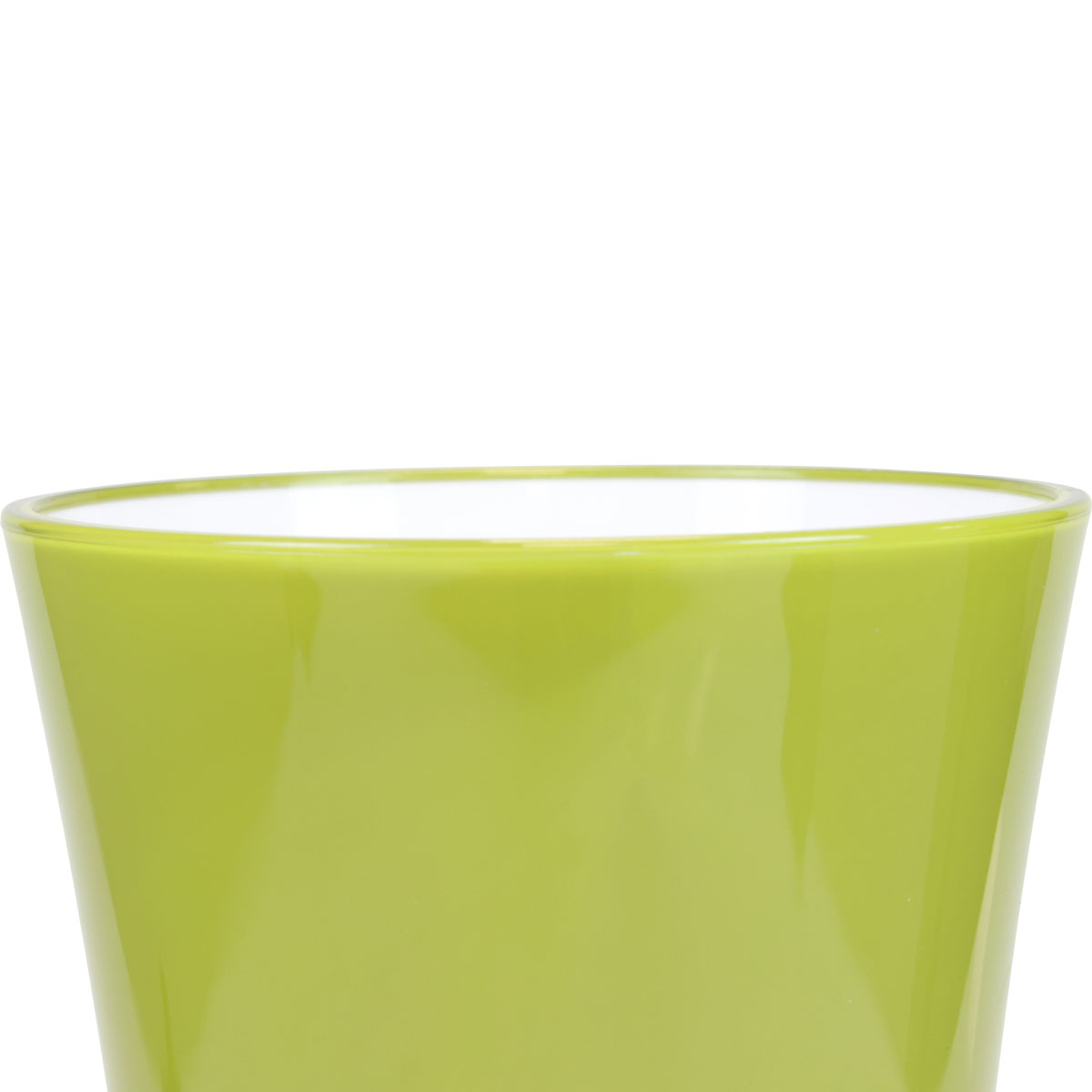 A belső réteg fehér, és csak az aljáig terjed, míg a zöld, enyhén átlátszó külső réteg teljesen körülveszi a vázát.