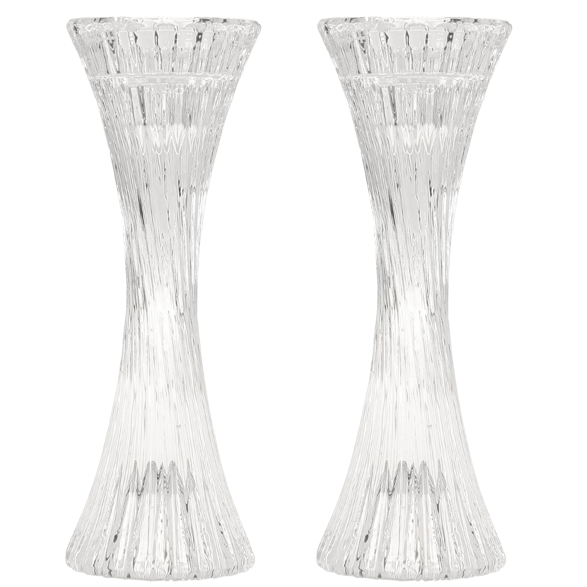 Üveg gyertyatartó, átlátszó, rúd alakú, hornyolt, M20cm, 2 db