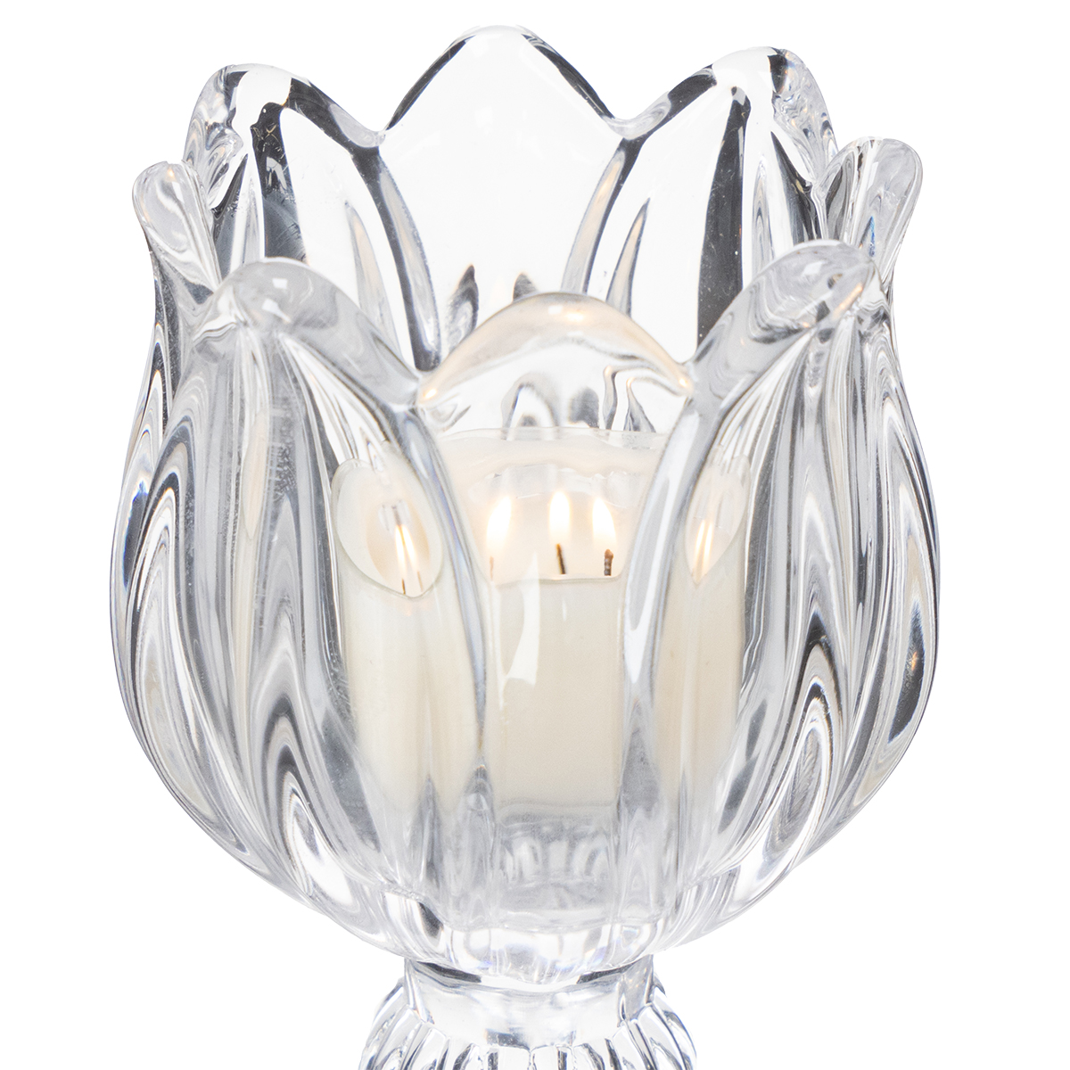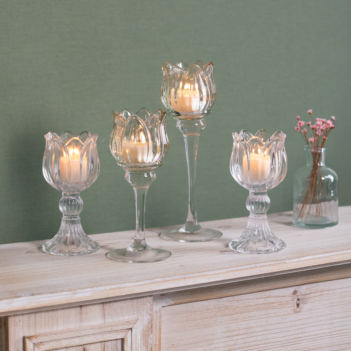 Üveg gyertyatartó asztaldísz – elegancia virágos formában