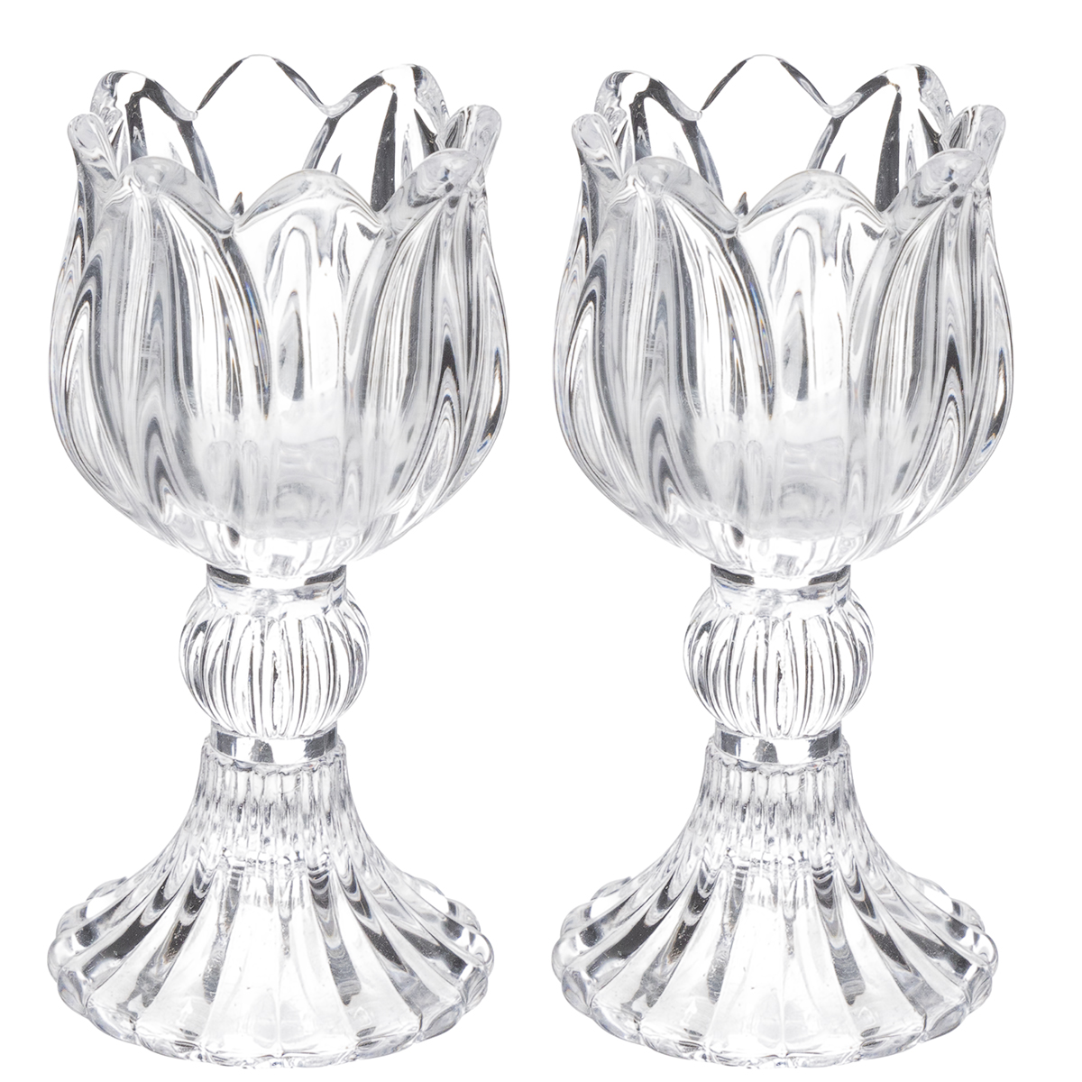Üveg gyertyatartók virágmintával, elegáns asztaldíszítéshez, 14 cm, 2 darab