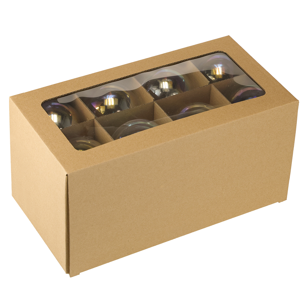 Termék neve: Üveg karácsonyi gömbdíszek, irizáló, átlátszó, 7,5 cm, 12 darab
