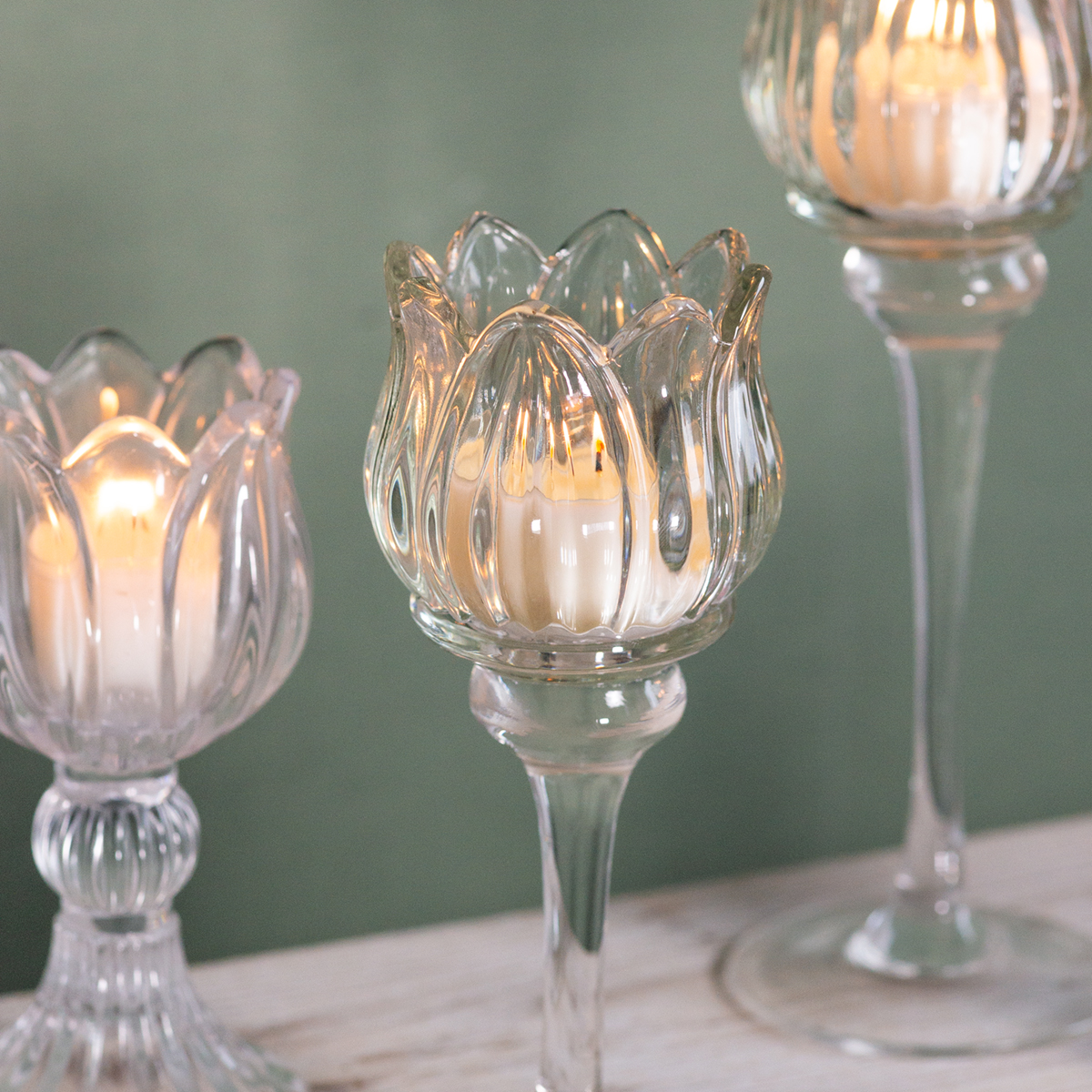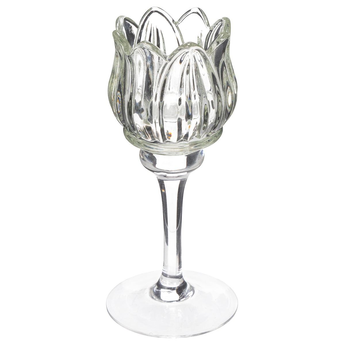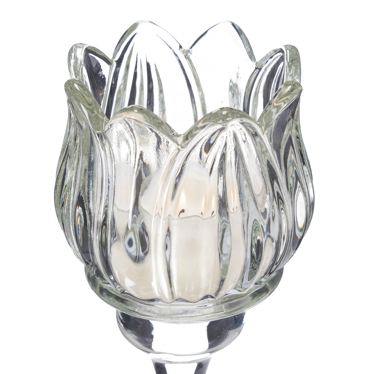 Kiváló minőségű üveg mécsestartó virág formájában – elegáns lakberendezési kiegészítő