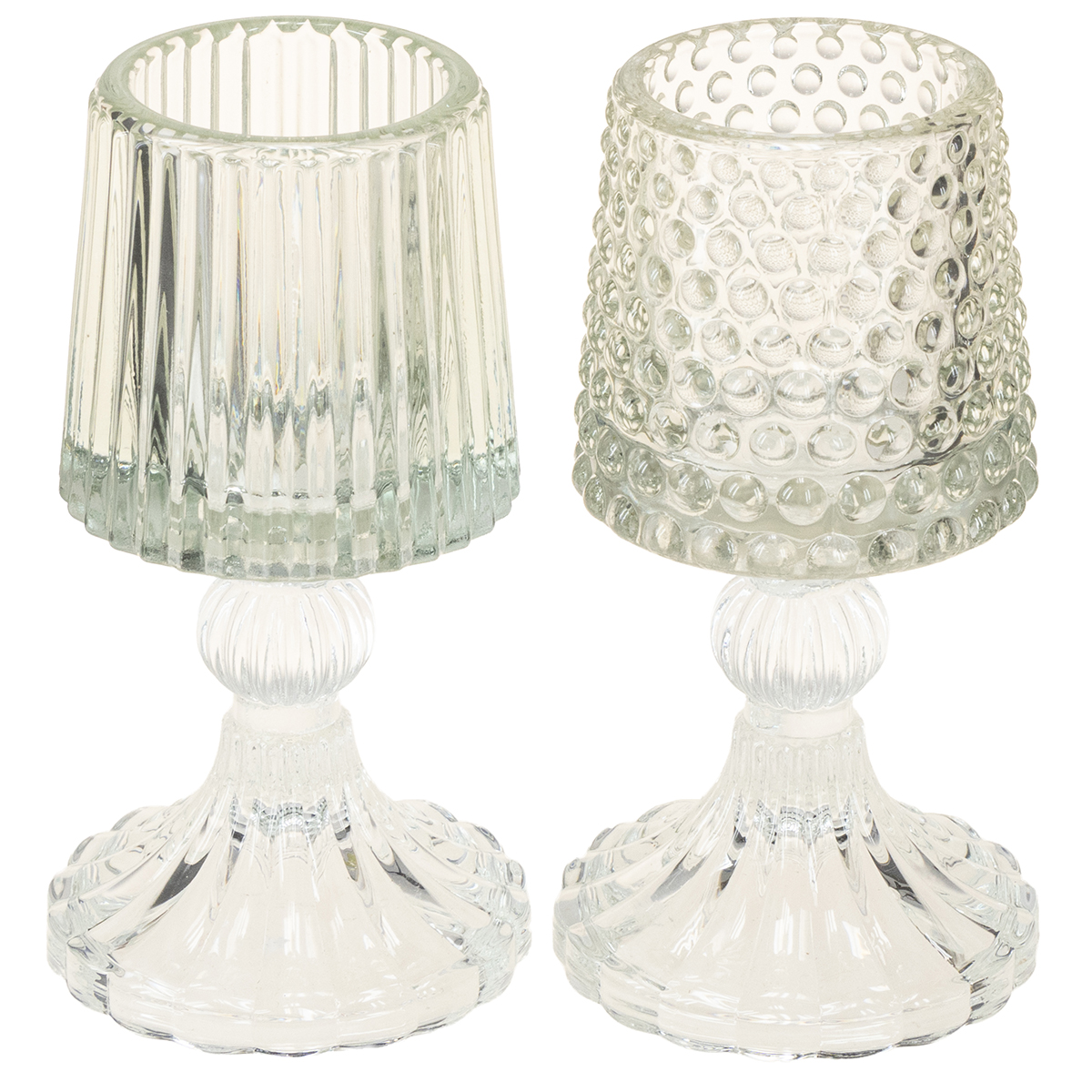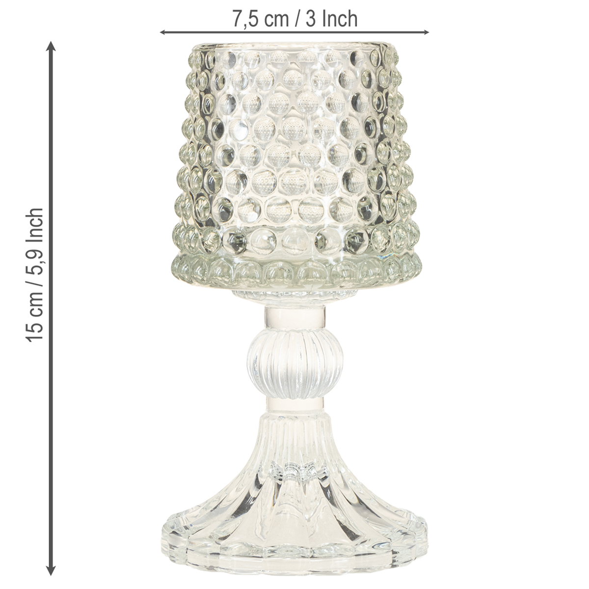 Termék neve: Üveg mécsestartó pöttyökkel és barázdákkal az alján, 15 cm, 2 db