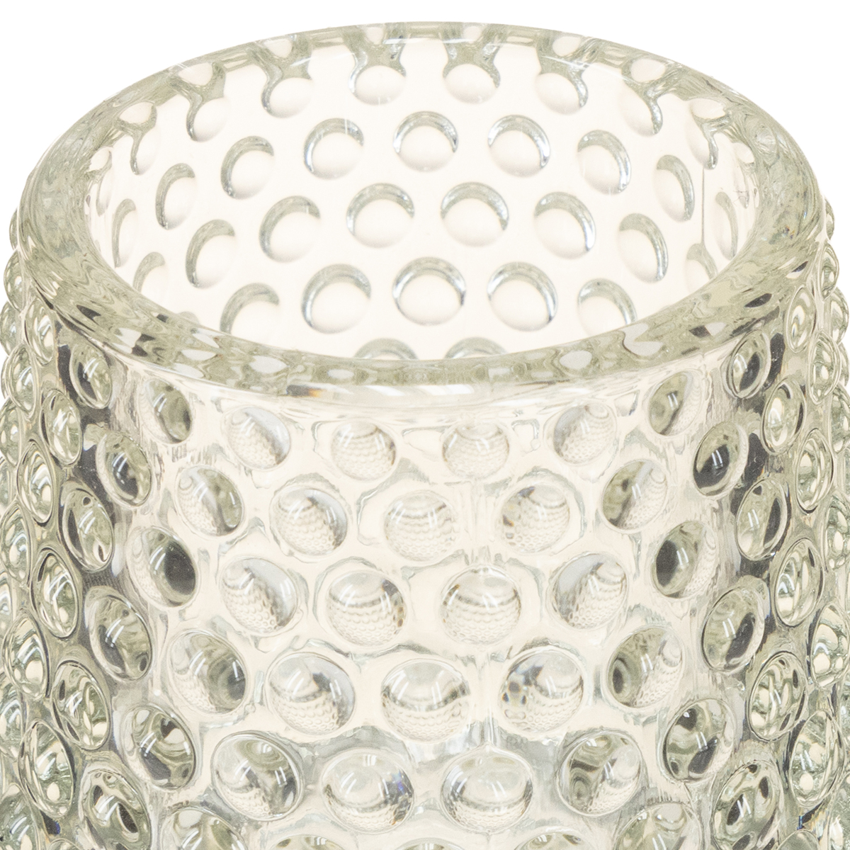 Az üveg mécsestartók talppal és körülbelül 15 cm magasan, igazi sokoldalúak. Finom megjelenésüket a pöttyök és barázdák elegáns kombinációja egészíti ki. Minden üveg mécsestartó egy kis műalkotásnak tűnik, mégis praktikus előnyökkel rendelkezik. Az üveg átlátszó felülete lehetővé teszi a gyertyafény egyenletes eloszlását, harmonikus hangulatot teremtve – tökéletes egy romantikus vacsorához vagy egy meghitt, kanapén töltött órához.