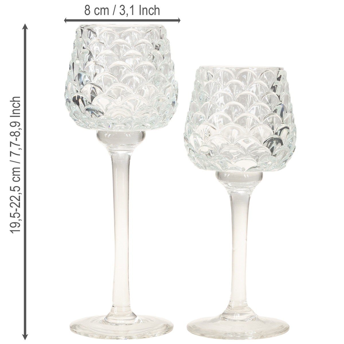 Termék neve: Üveg mécsestartó talppal, kúp alakú, 19,5/22,5 cm, 2 db-os szett