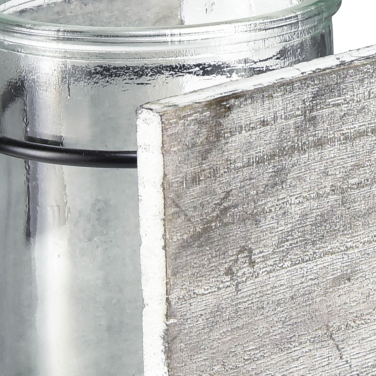 Üvegből készült teamécses tartó rusztikus fa keretben - szürke-fehér, 10x9x10cm - hangulatos asztaldísz 3 db