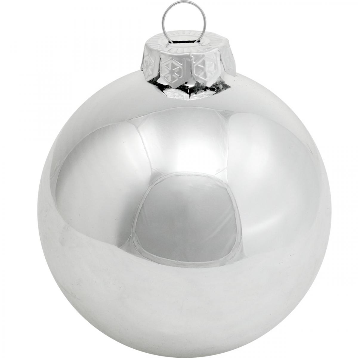 Termék neve: Üveggolyó, fadíszek, karácsonyfagolyó ezüst H8,5cm Ø7,5cm valódi üveg 12db