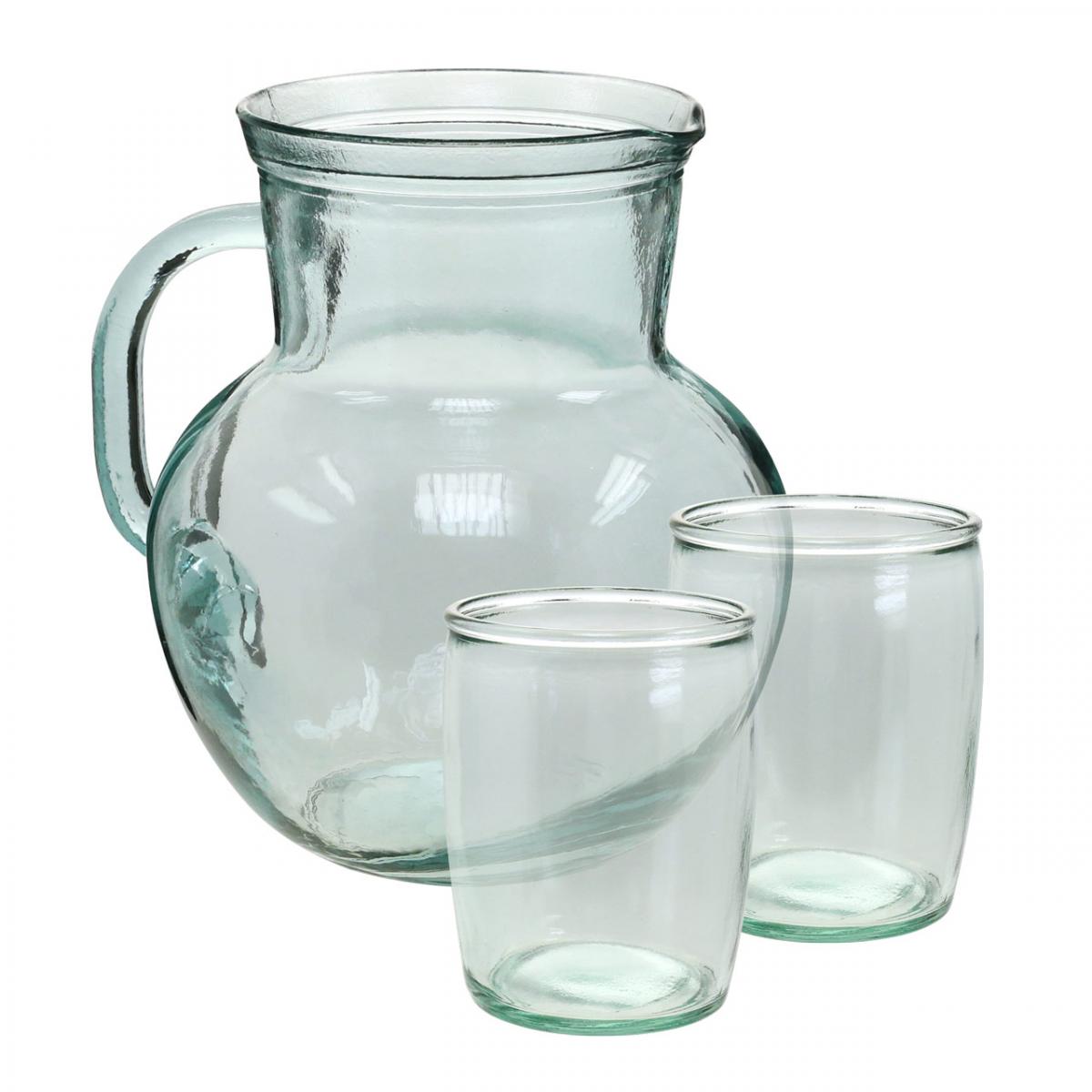 Üvegkancsó ivópoharak, italkészlet tálaláshoz kékes átlátszó H20cm/11,5cm 5 db
