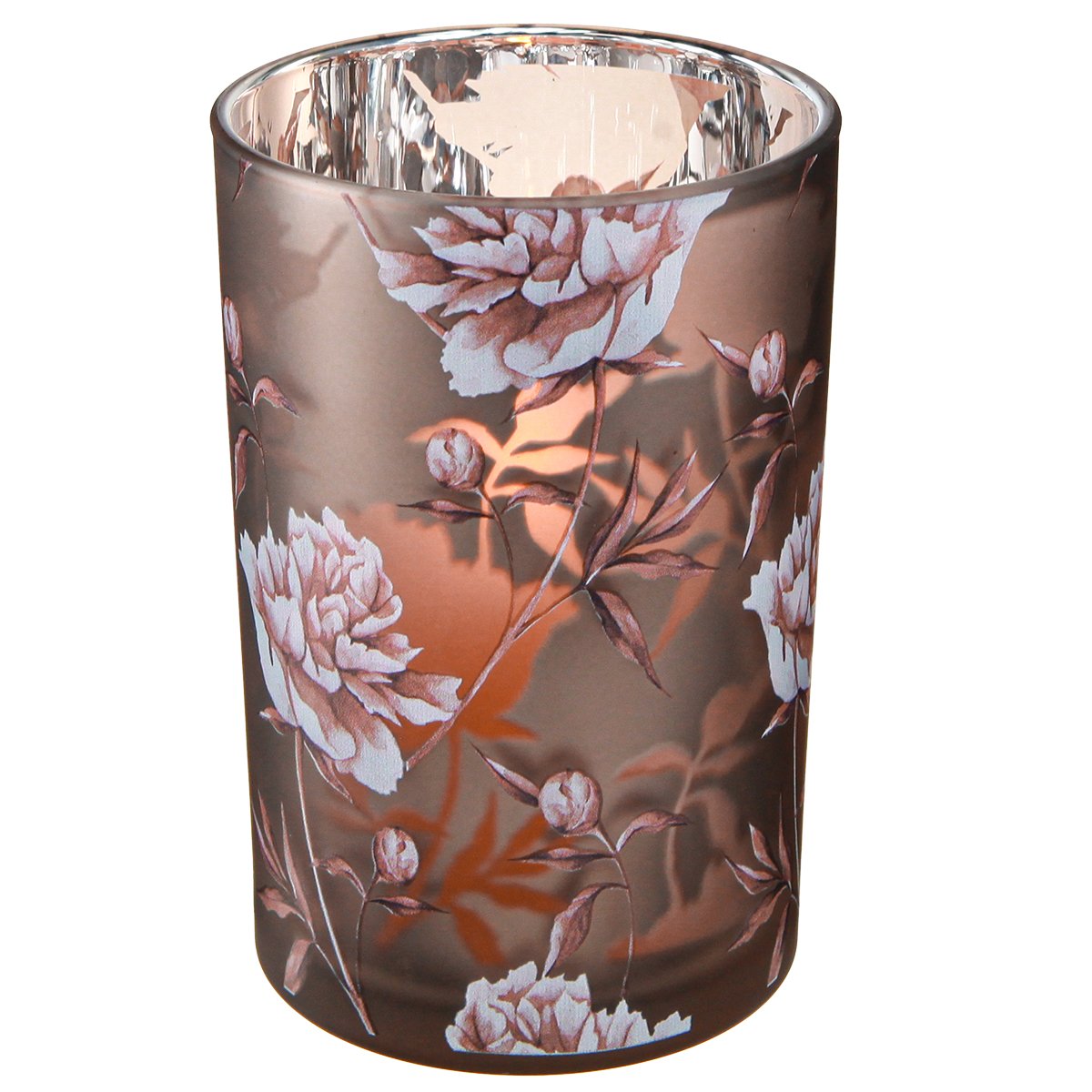 Harmonikus barna, ezüst és rózsaszín színekben pompázó üveglámpásunk stílusos kiegészítője lehet asztali dekorációjának, tökéletes tavaszra és nyárra. Lenyűgöző 3D-s hatásával romantikus és hangulatos hangulatot kölcsönöz bármely helyiségnek. A vastag, többrétegű üveg és az ezüst színű belső réteg kifinomult kombinációja rendkívül tartós és kiváló minőségű. A stilizált bazsarózsa motívummal díszített, kidolgozott dizájn különleges kifinomultságot és mélységet kölcsönöz. Körülbelül 18 cm magas és 12 cm átmérőjű lámpásával tökéletes mécsesekhez vagy oszlopgyertyákhoz, de ideális mini vázaként szárított virágokhoz, vagy egyedi dekorációként vidéki házban vagy shabby chic stílusban is. Nappali dekorációként vagy romantikus estékre személyessé varázsolhatja otthonát.
