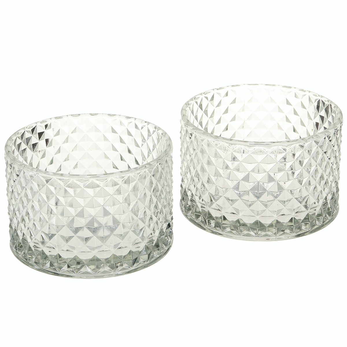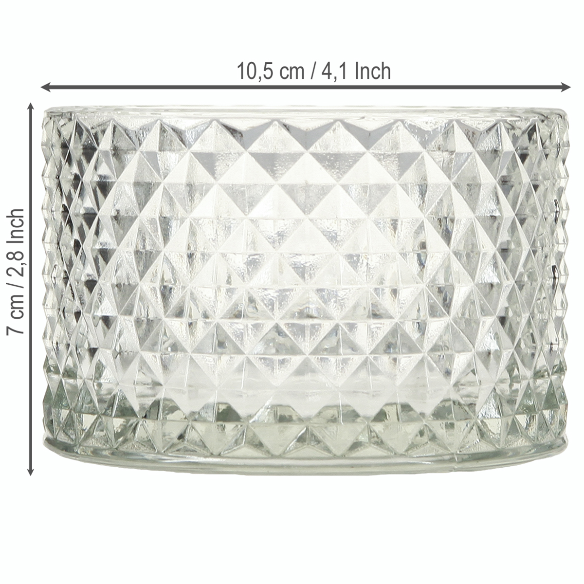 Üvegtál teamécses tartó retro gyémánt átlátszó Ø10,5cm 2db