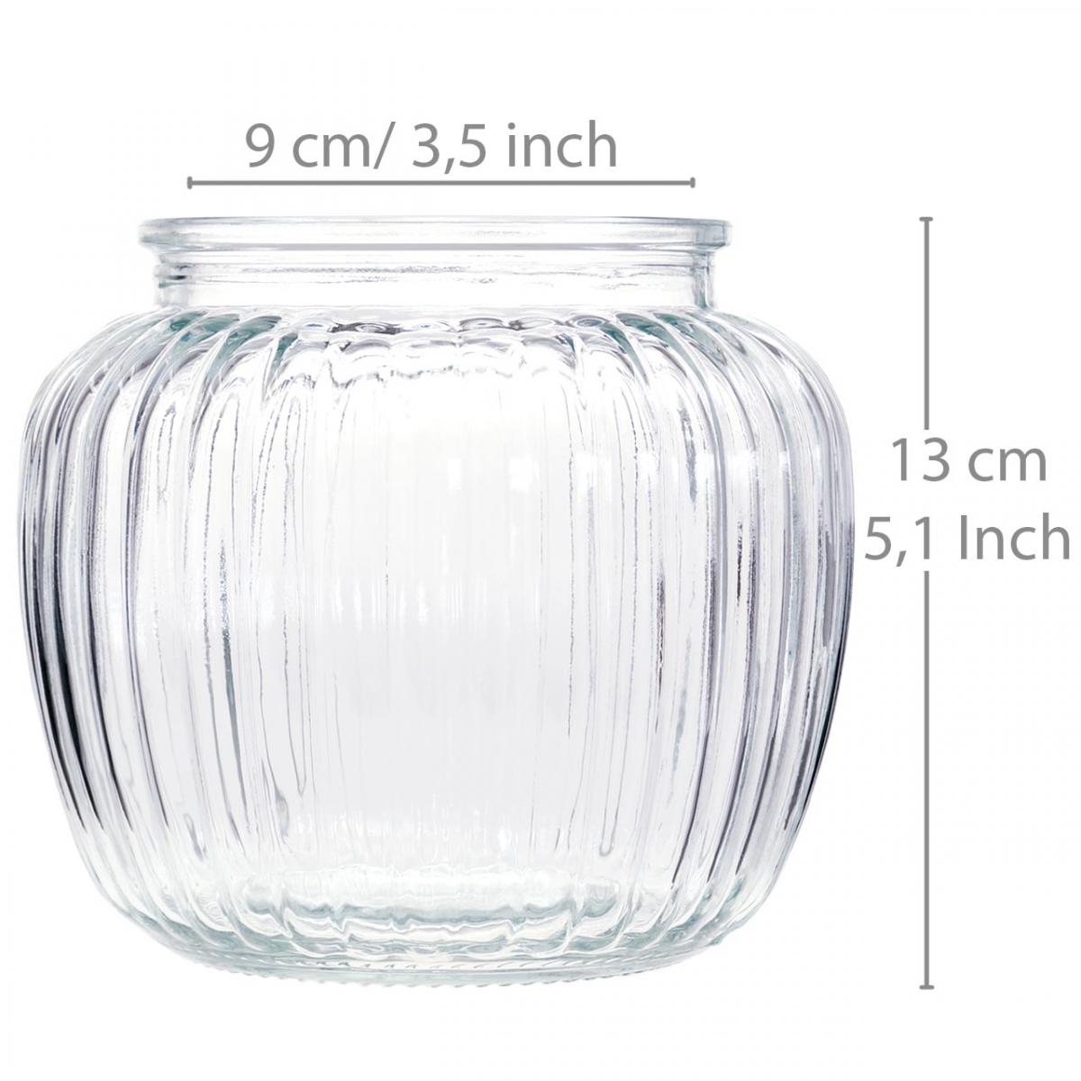 Üvegváza bordázott vázaüveg Ø14cm H13cm 2db