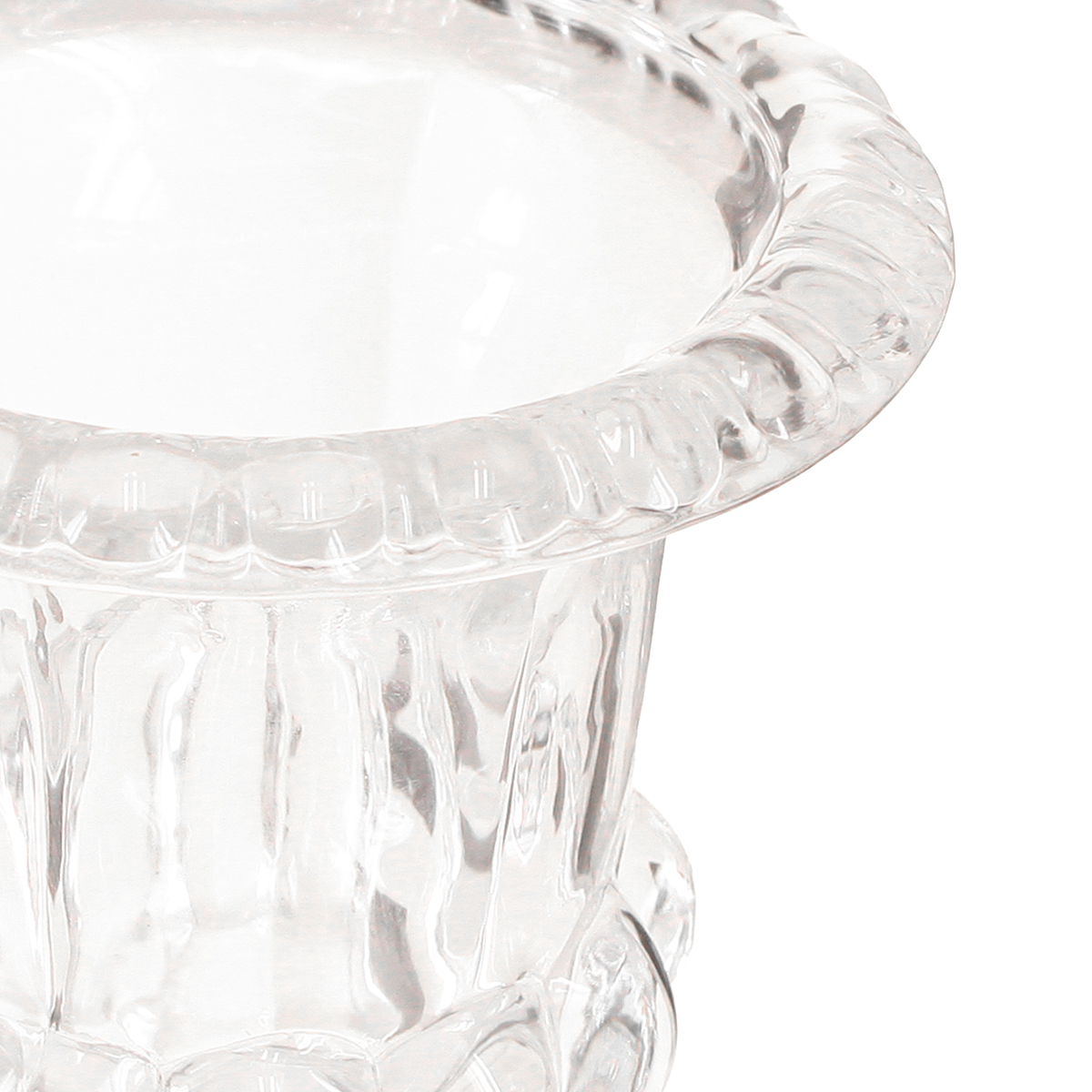 Kombinálja a kis üvegvázát tengeri vagy modern otthoni kiegészítőkkel a friss megjelenés érdekében. A kristályra emlékeztető átlátszó üveg részletgazdag formája elegánsan töri meg a fényt, így a váza ideális esküvők és egyéb romantikus alkalmak asztaldíszének.