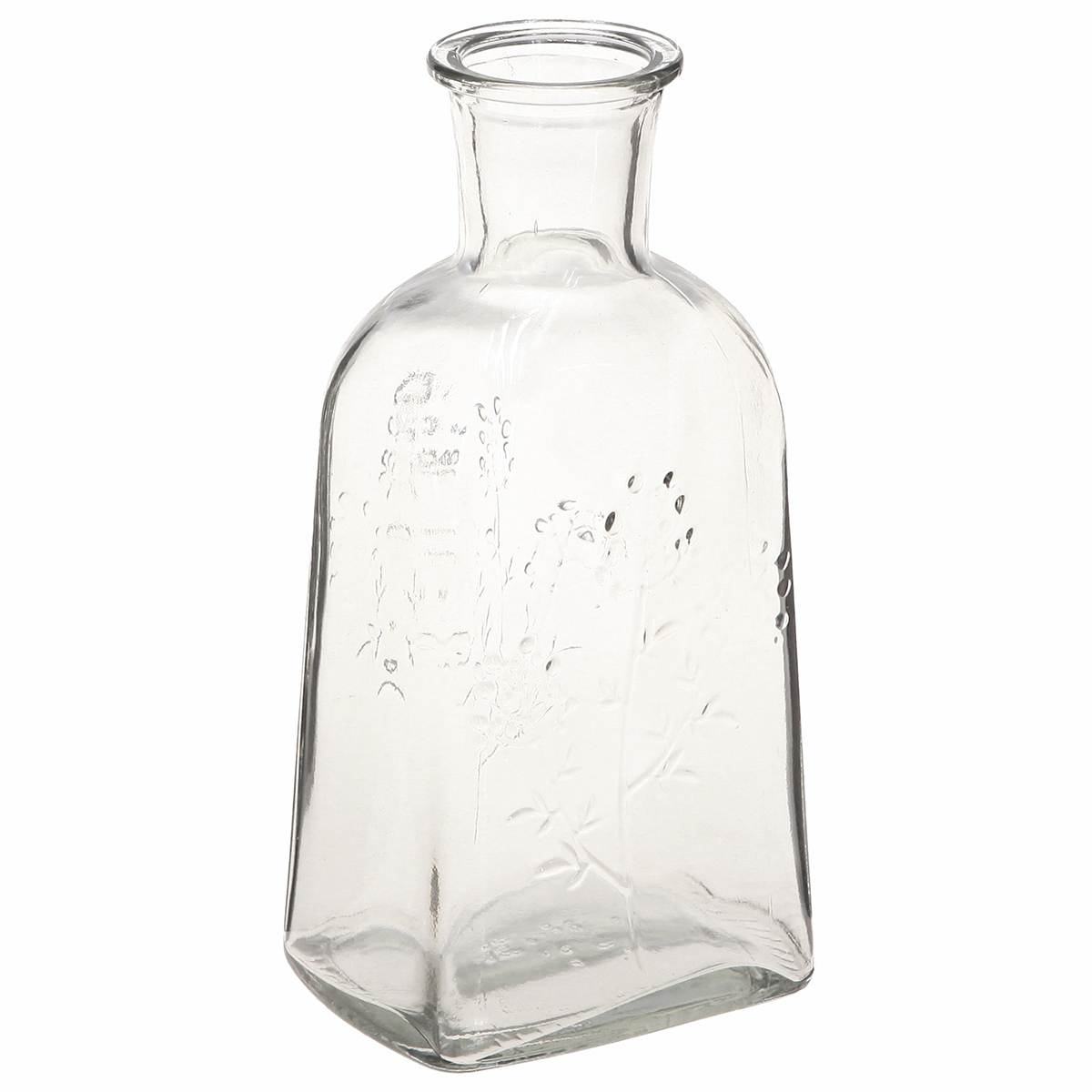 A palack formájú üvegvázánk több, mint dekoratív látvány – stílusos kiegészítő, amely zökkenőmentesen integrálható a legkülönfélébb belsőépítészeti koncepciókba. Körülbelül 19 cm-es magasságával és rusztikus kialakításával ez a kiváló minőségű váza időtlen eleganciát áraszt. A kifinomult bogyóág, amely motívumként domborodik a vázán, inspiráló hatást ad neki. Ez a váza ideális modern vagy klasszikus enteriőrbe, és finoman kiemeli a vidéki stílusú virágdíszek szépségét. Téglalap alakú alapja stabilitást biztosít, míg az átlátszó anyag gyönyörűen mutatja be az elrendezett növények színeit. Akár a nappaliban, akár az íróasztalon vagy a recepción, ez az üvegváza mindig kiváló választás a stílustudatos dekorációhoz.