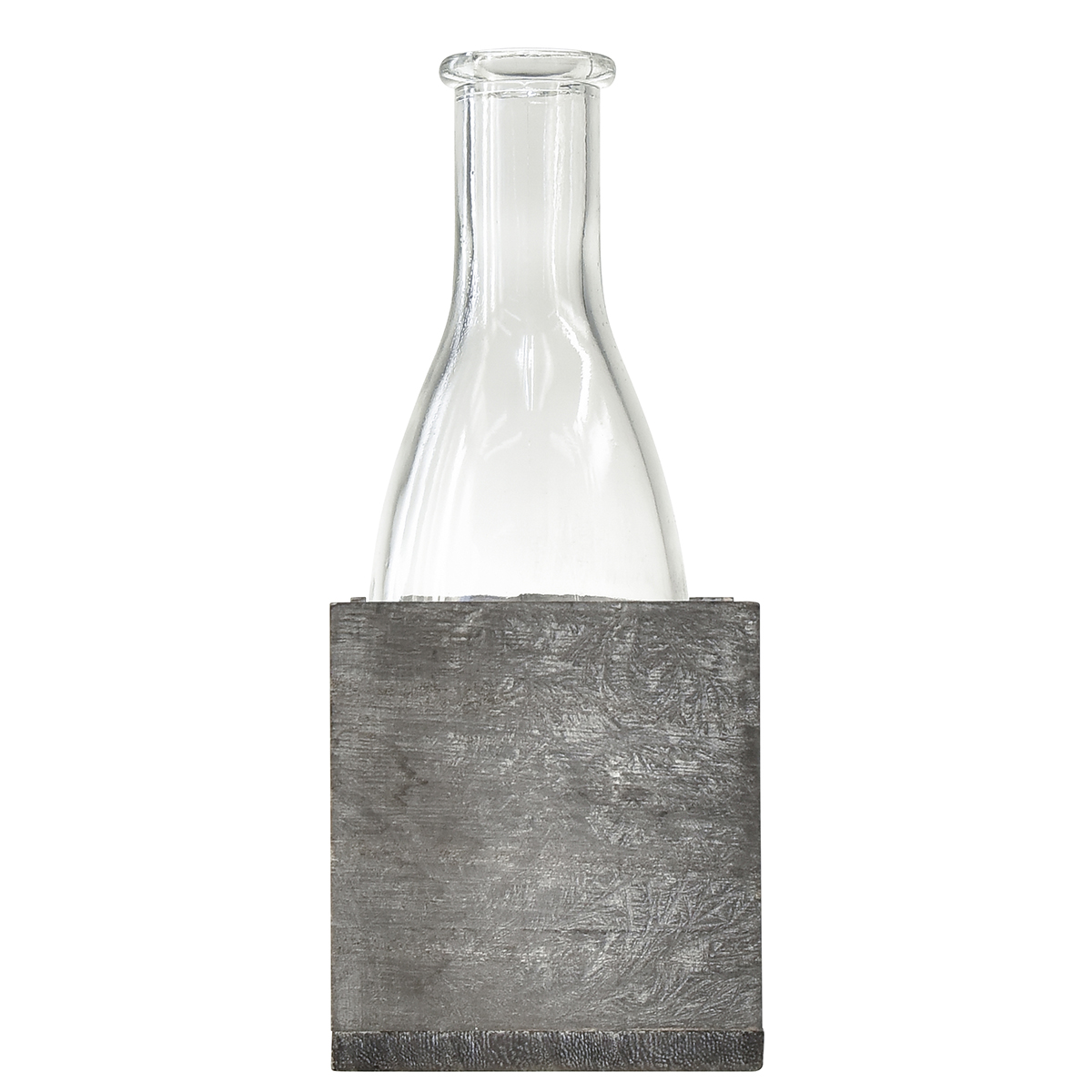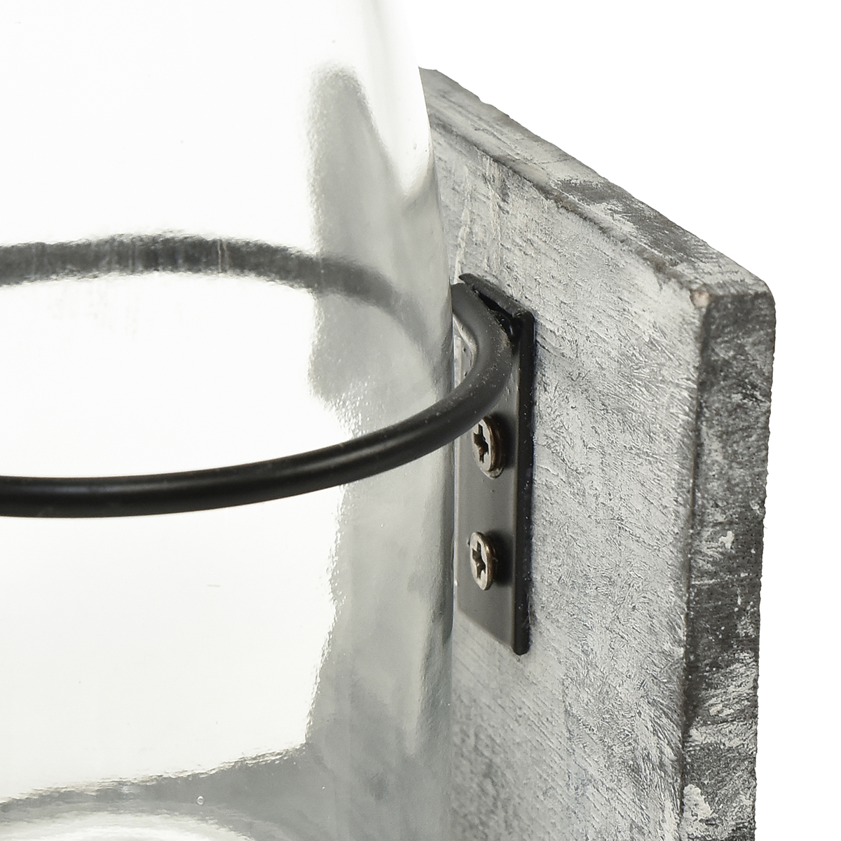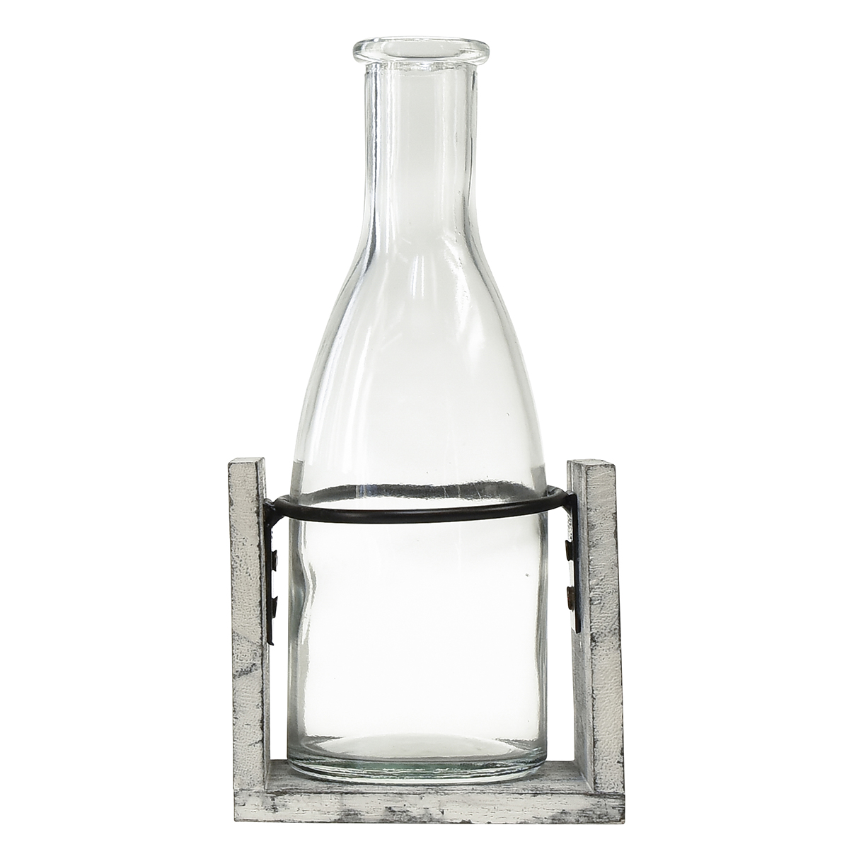 Üvegváza szürke fa állványban, 9,5x8x20 cm - Rusztikus dekoráció 4 üveggel