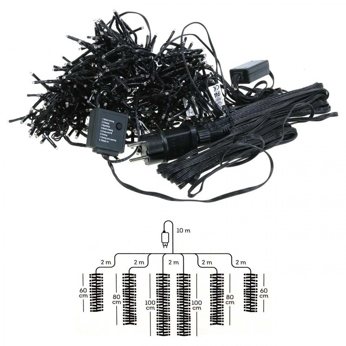 Használja ezt a hóhatású fényes kaszkádot, hogy varázslatos karácsonyi fényeket készítsen adventi dekorációihoz télen!Összesen 480 meleg fehér LED lámpa van 6 különböző szálra osztva ezen a kiváló minőségű fénykaszkádon.