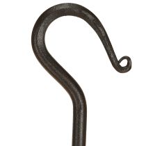 A fa orsón lévő juta zsinór durva és szabálytalan, ami szépen kifejezi ennek a faldísznek a vintage jellegét. A fém felfüggesztés sötétbarna, mint az öregített öntöttvas, és apró foltok is vannak, amelyek rozsdanyomokra emlékeztetnek.