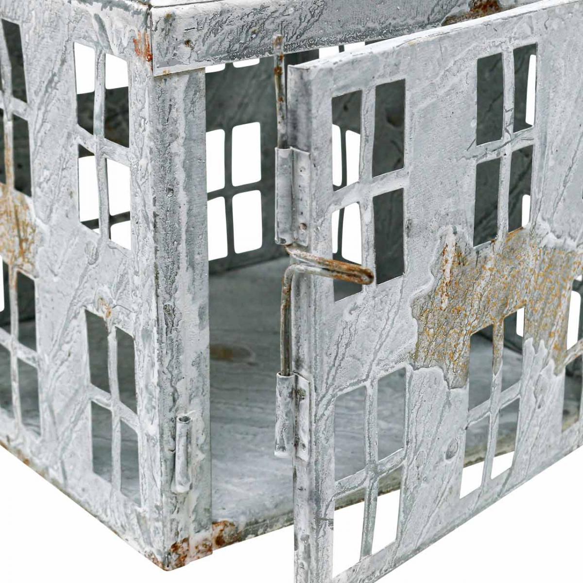 A lámpás fémje fehérre lett mosva, és művészi felületet kapott a népszerű kopott sikkes stílusban. A tetőn van egy lámpás lyuk a gyertyafény számára és egy fém akasztó a teljes szerkezet felakasztásához.