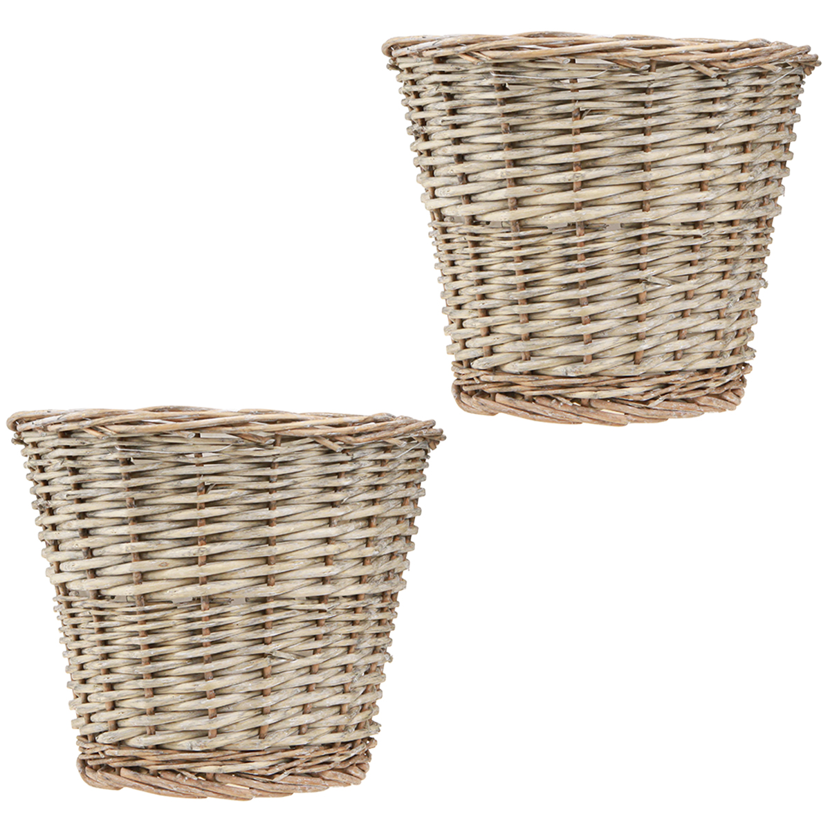 Vintage fonott virágkosár, Ø25 cm, M21 cm, szürke/fehér, 2 db-os szett