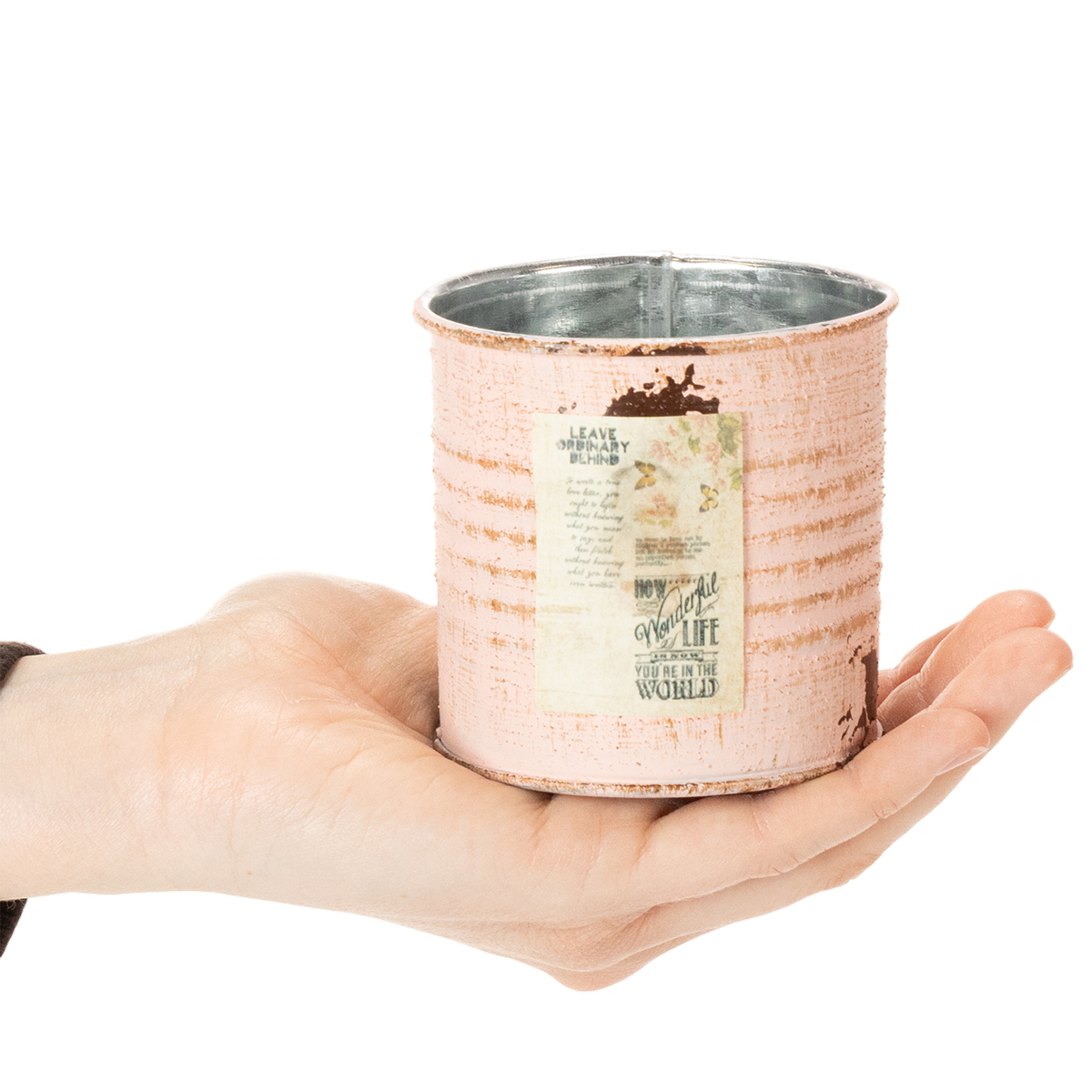 Virágcserépként garantáltan szemet gyönyörködtető lesz a díszdoboz lazac színű változatban! A fémből készült kis konzervdoboz belül ezüst, kívülről kéttónusú vintage festékkel van szórva. Az olyan apró részletek, mint a nosztalgikus címke és a festett rozsdafoltok, régi megjelenésű dekorációs tárggyá varázsolják a fémedényt.