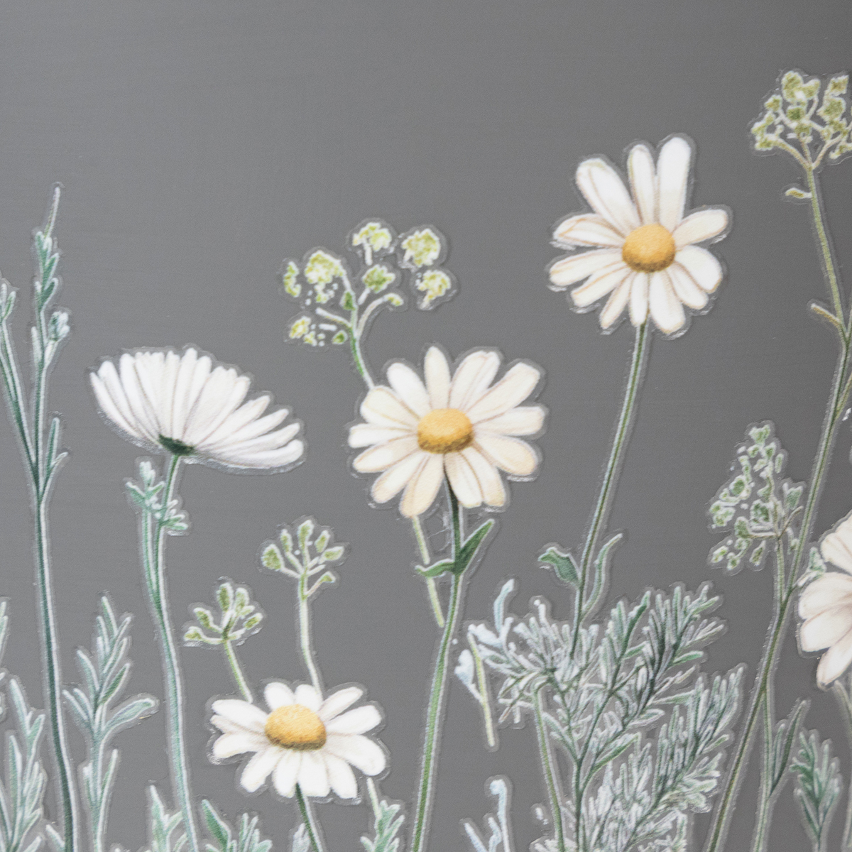 - Design: Finom vadvirágok szürke lakkozott fémen