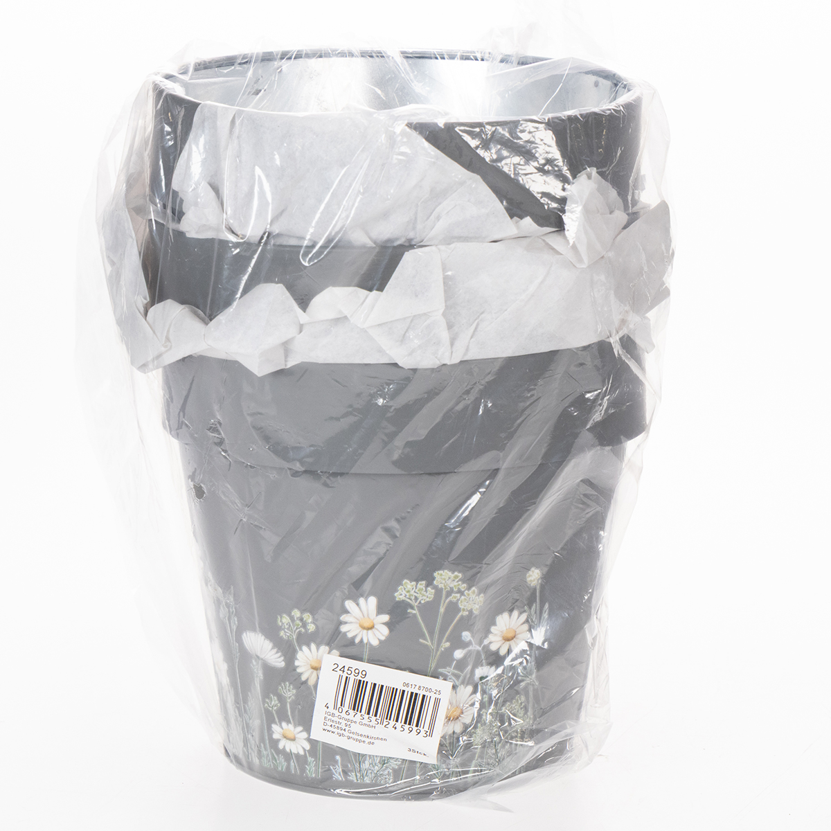 Egy virágcserép, amely a nyári rét hangulatát idézi – nem álomszerű? Elbűvölő vadvirágos dizájnjával ez a cserép egy csipetnyi természetet visz az erkélyére vagy a teraszára. A szürke fém felülettel harmonikusan kombinált finom virágok egyszerű eleganciát sugároznak, amely mind a modern, mind a klasszikus környezetet kiegészíti. Akár élénk erkélydíszítést, akár elegáns szobanövény-kompozíciót tervez, ezek a virágcserepek tökéletesen bemutatják növényeit. És a legjobb az egészben? Három darabos, praktikus készletben kaphatók! Ideális különböző növényfajták kombinálására. Egy sokoldalú kis gyöngyszem, amely nemcsak szép, de hihetetlenül praktikus is.