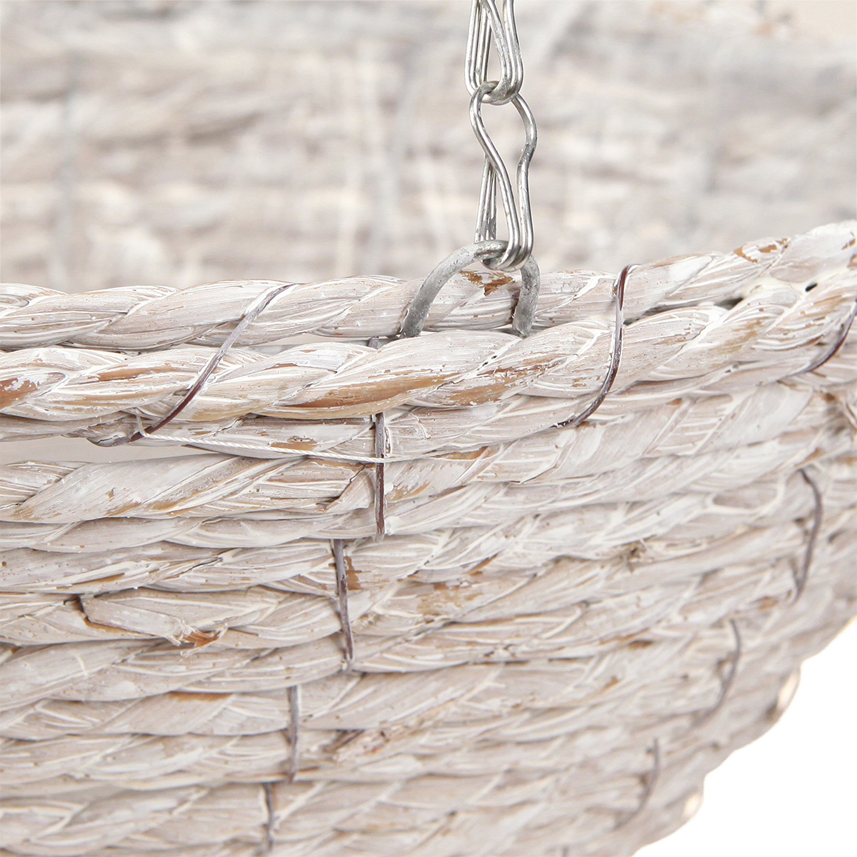 Stílusos beltéri növényzet szalmából készült, fehér függő virágcserépünkkel