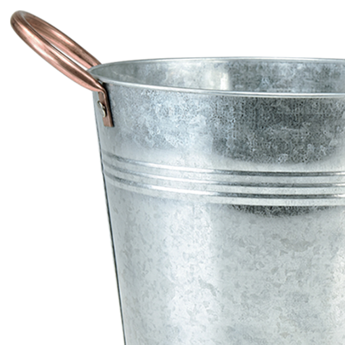 A különböző fémek magával ragadó kontrasztját teremtik meg ennek a fémvödörnek a réz színű fogantyúi. A horganyzott, fényes ezüst felület finom vintage megjelenést kölcsönöz az ültetőgépnek. Ültetés előtt a fém edényt célszerű fóliával kibélelni, hogy megelőzzük a rozsdásodást és a korróziót.