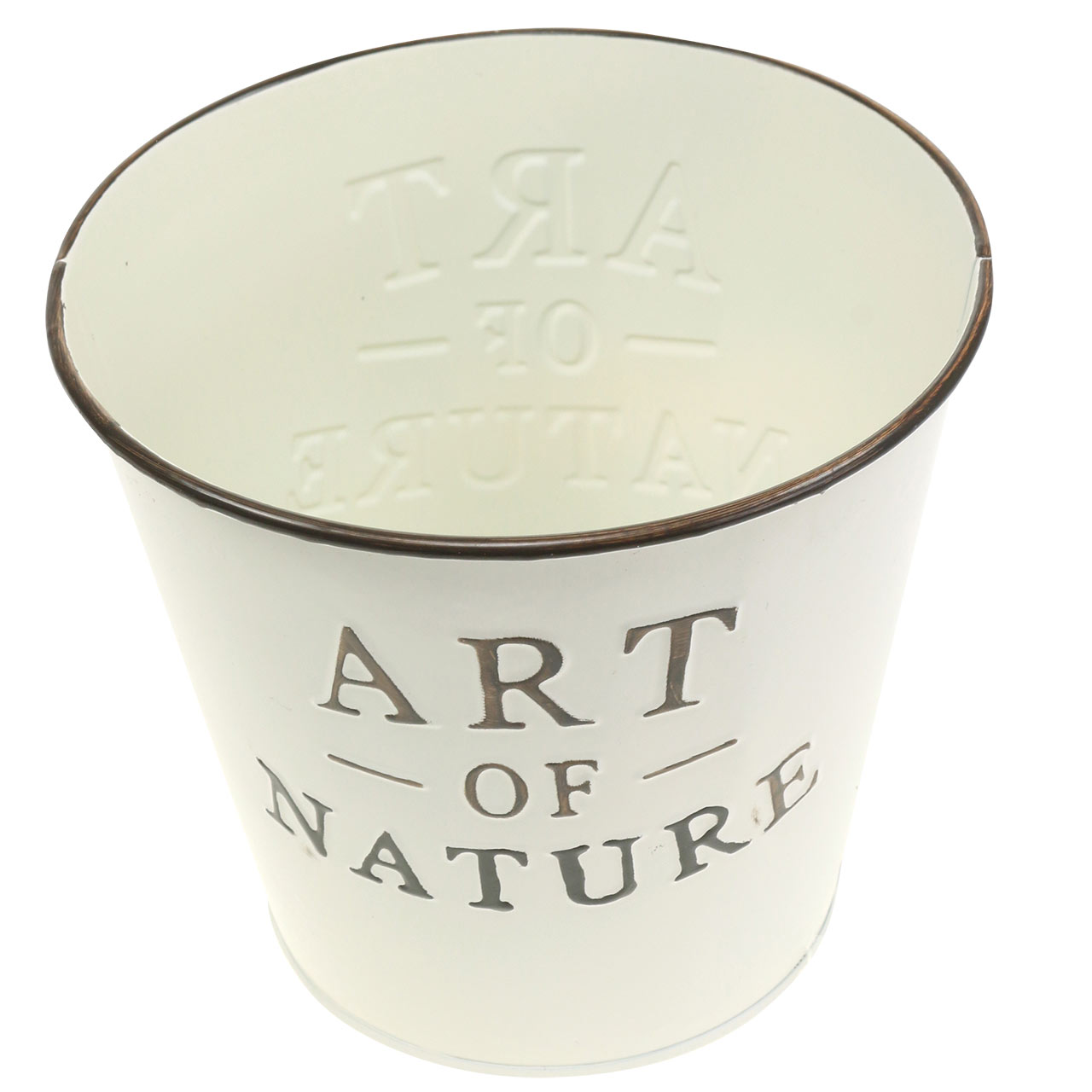 A cinkből készült meleg krémes virágcserep átmérője körülbelül 15 centiméter a tetején. Magassága 13,5 centiméternek felel meg. Felső él átmérője: kb Ø15cm
