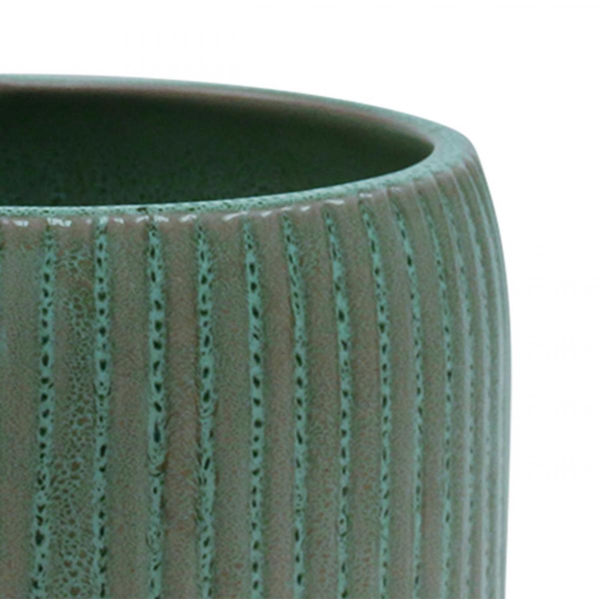 Virágcserép kerámia ültető hornyok zöld Ø10cm H8,5cm