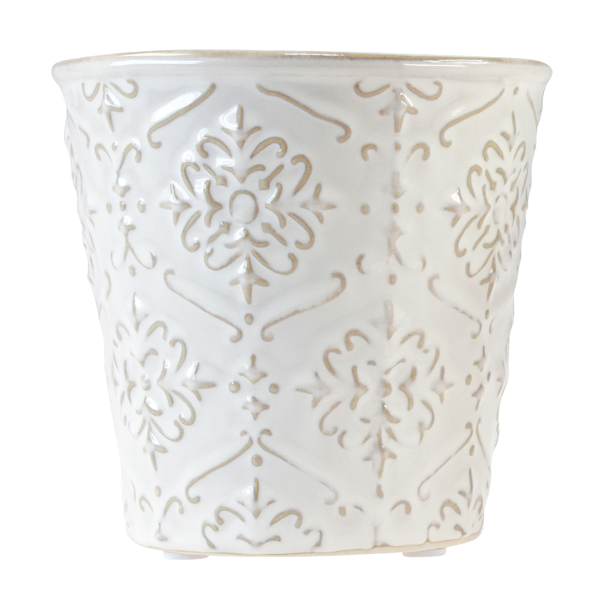 Termék neve: Virágcserép kerámia ültetőgép fehér krém bézs Ø13,5cm 2 db