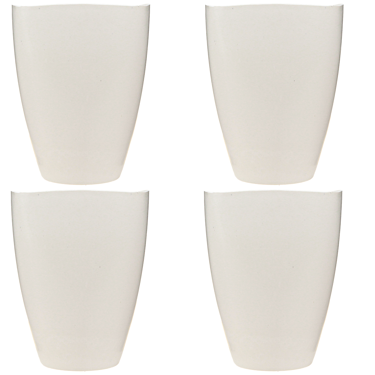 - Négy fehér műanyag virágcserép, magassága kb. 16,5 cm