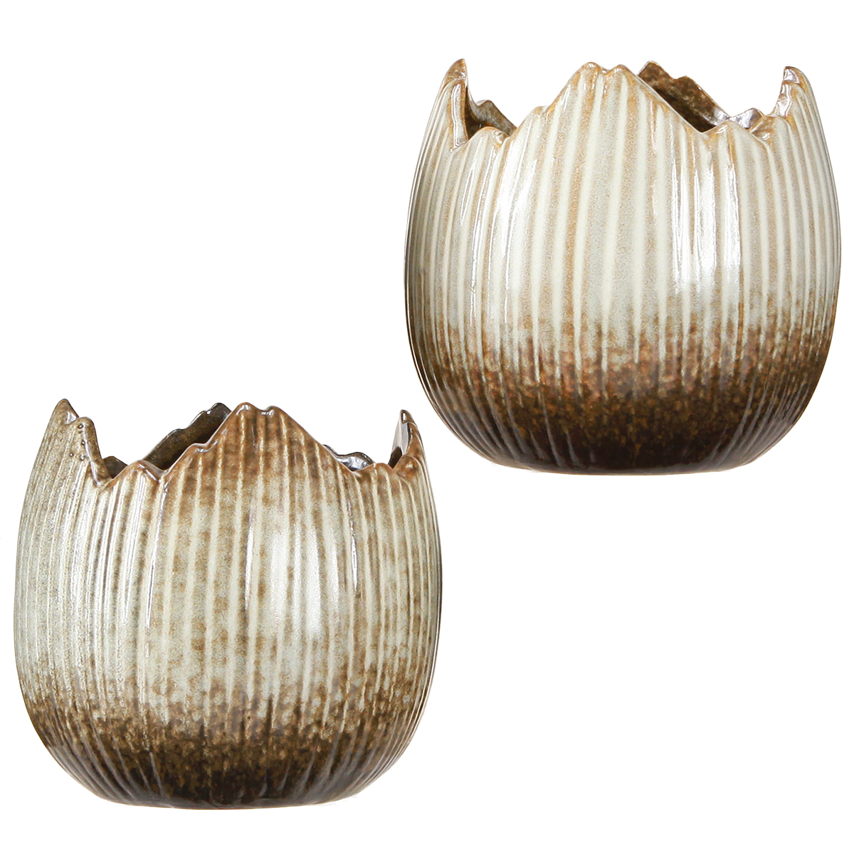 Virágcserepes Kerámia Tojás Törött Krémbarna Ø11,5cm 2 db