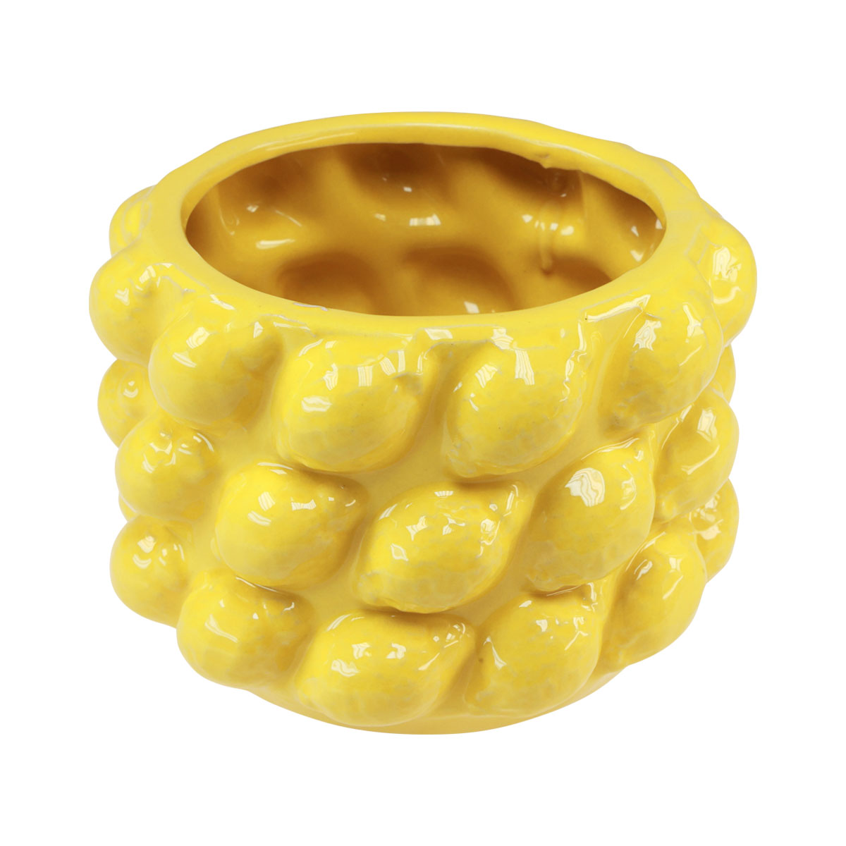 Mázas sárga, ez az egyedi citromváza azonnal a mediterrán citrusfélékre emlékeztet. A külső szoborszerű kialakítása sok kis citrommal élénk megjelenést kölcsönöz az ültetőgépnek.