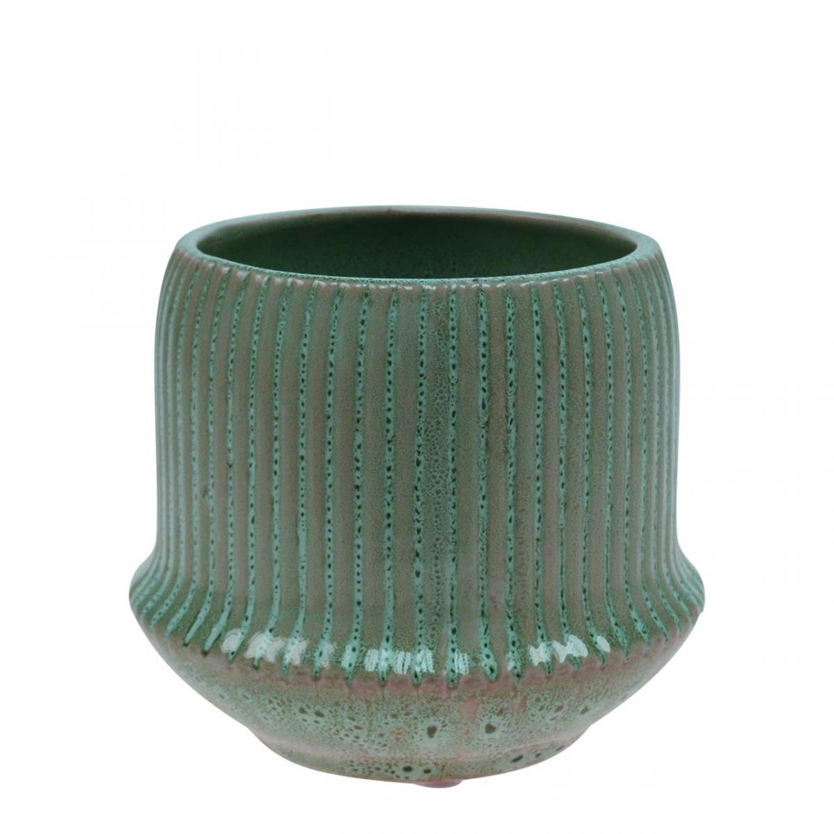 Termék neve: Virágcserepes kerámia ültetőgép hornyokkal zöld Ø12cm H10,5cm