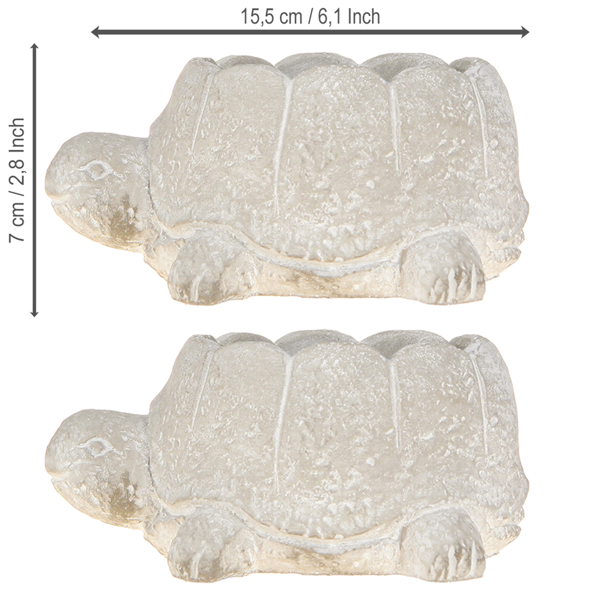 Fedezze fel a sokféle kreatív kerti dekorációt egyedi teknős alakú virágcserépünkkel. Ez a bájos betonfigura tökéletesen illeszkedik minden kertbe vagy lakókörnyezetbe, és szezonális hangsúlyt fektet, különösen az asztalokon. Szürkés-fehér, mosott felületével ez a dekoratív figura a közkedvelt shabby chic stílust testesíti meg, amely tavasszal és nyáron is friss levegőt hoz. Különösen a finom részletek, mint például a teknősbéka kedves formájú kis lábai kölcsönöznek ennek a dekorációnak élénk megjelenést. Könnyű lesz a vásárlási döntés, mert a készletben két virágcserep található, amelyek kreatív lehetőségeket kínálnak az erkélyrendezéshez, az ablakpárkány díszítéshez és a konyhaasztal dekorációhoz. Teknős virágcserépünk tökéletes ajándék a kert szerelmeseinek és azoknak, akik azzá szeretnének válni. A Floristik24-nél további hozzáillő dekorációs elemeket talál, amelyek kiemelik személyes stílusát és tökéletesen harmonizálnak ezzel a termékkel. Engedje szabadjára kreativitását, és alakítsa otthonát a jólét zöld oázisává!
