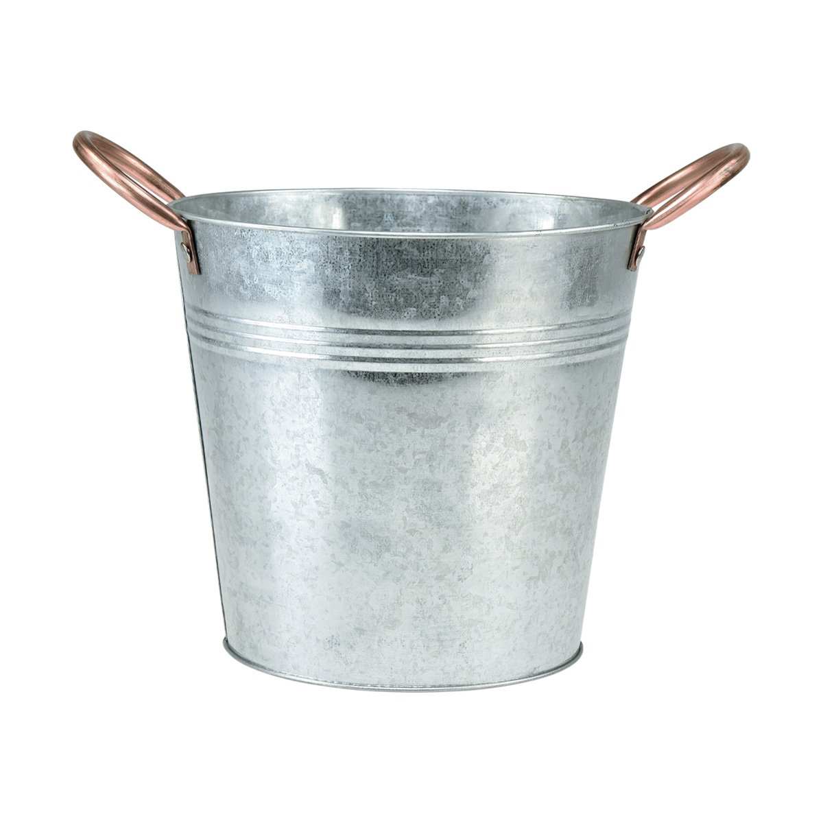 Virágcserépként ez a fogantyús vödör dekoratív ötlet, amely éppoly egyszerű, mint stílusos. Vigyen be egy darab vidéki varázst otthonába vagy irodájába, és mutassa be növényeit tökéletesen. A fém díszítés nemcsak rendkívül robusztus, hanem a vonzó réz színű fogantyúknak és az ezüst színű horganyzott testnek köszönhetően igazi szemet gyönyörködtető is.