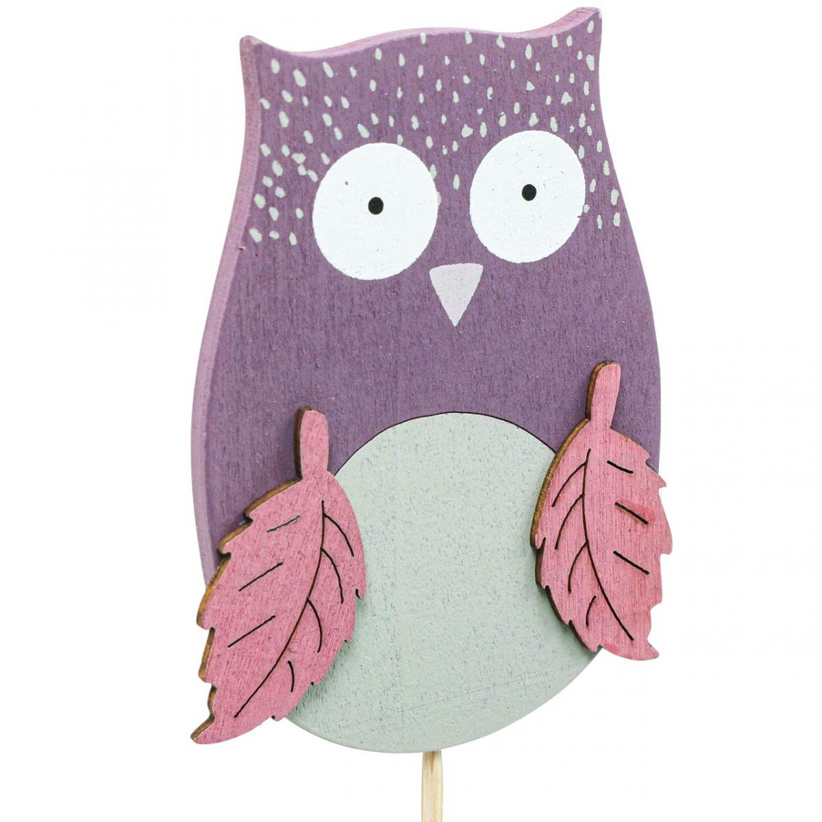 Virágdugó deco bagoly fa lila, barna 8cm 12db