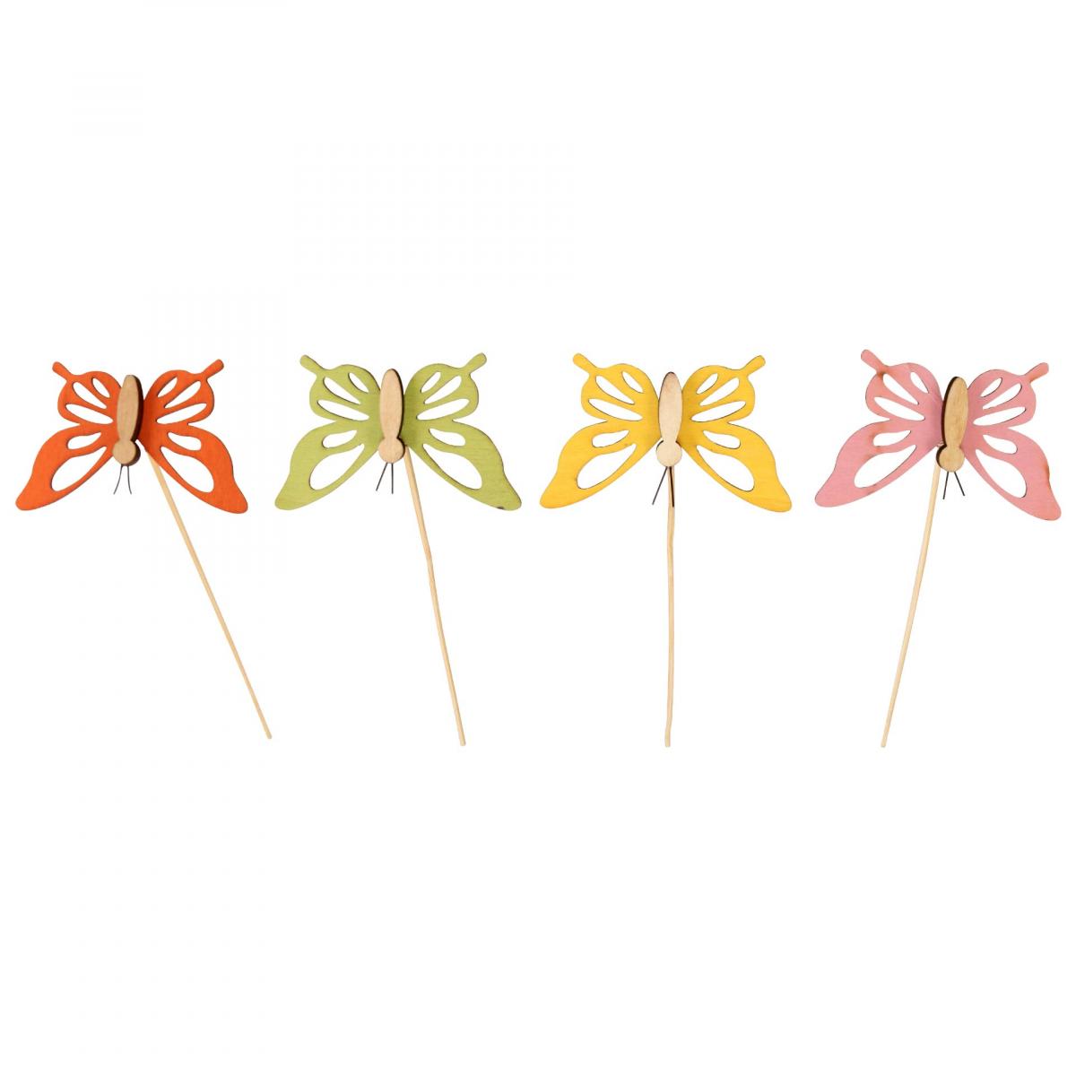 A pillangós virágdugókat egy összesen tizenkét darabot tartalmazó zacskóban szállítjuk. Így összesen három zöld, narancssárga, sárga és rózsaszín pillangót kapunk egy pálcán.Minden falepke körülbelül 8,5 centiméter nagyságú és körülbelül 28 centiméter hosszú a dróttal együtt.